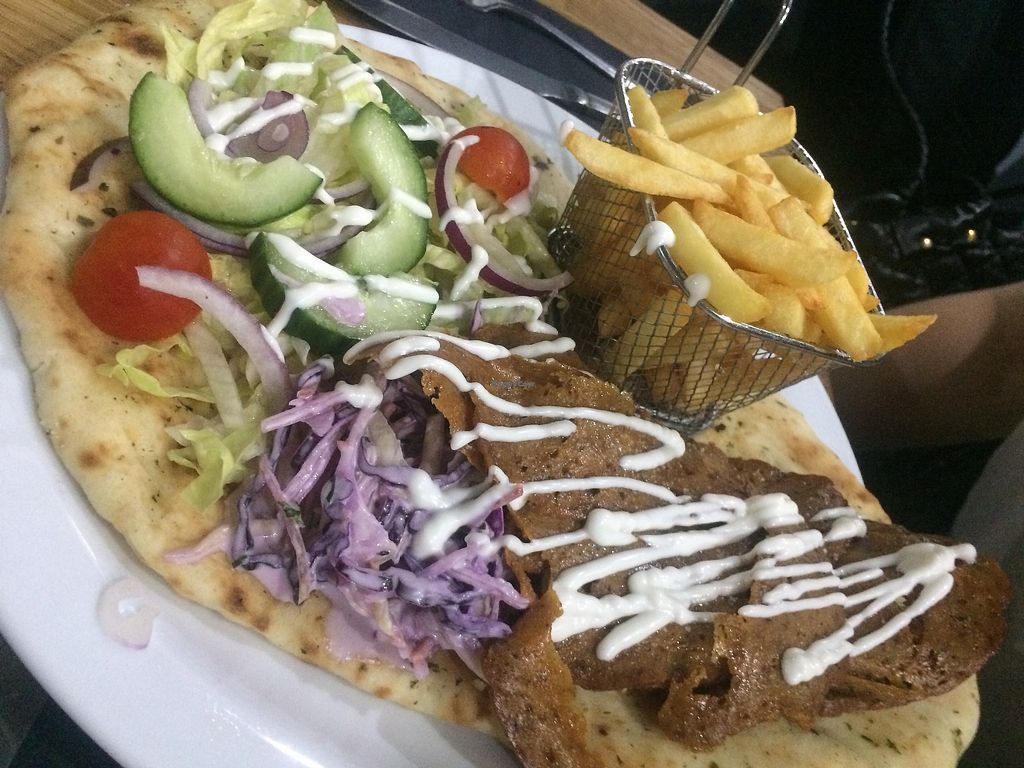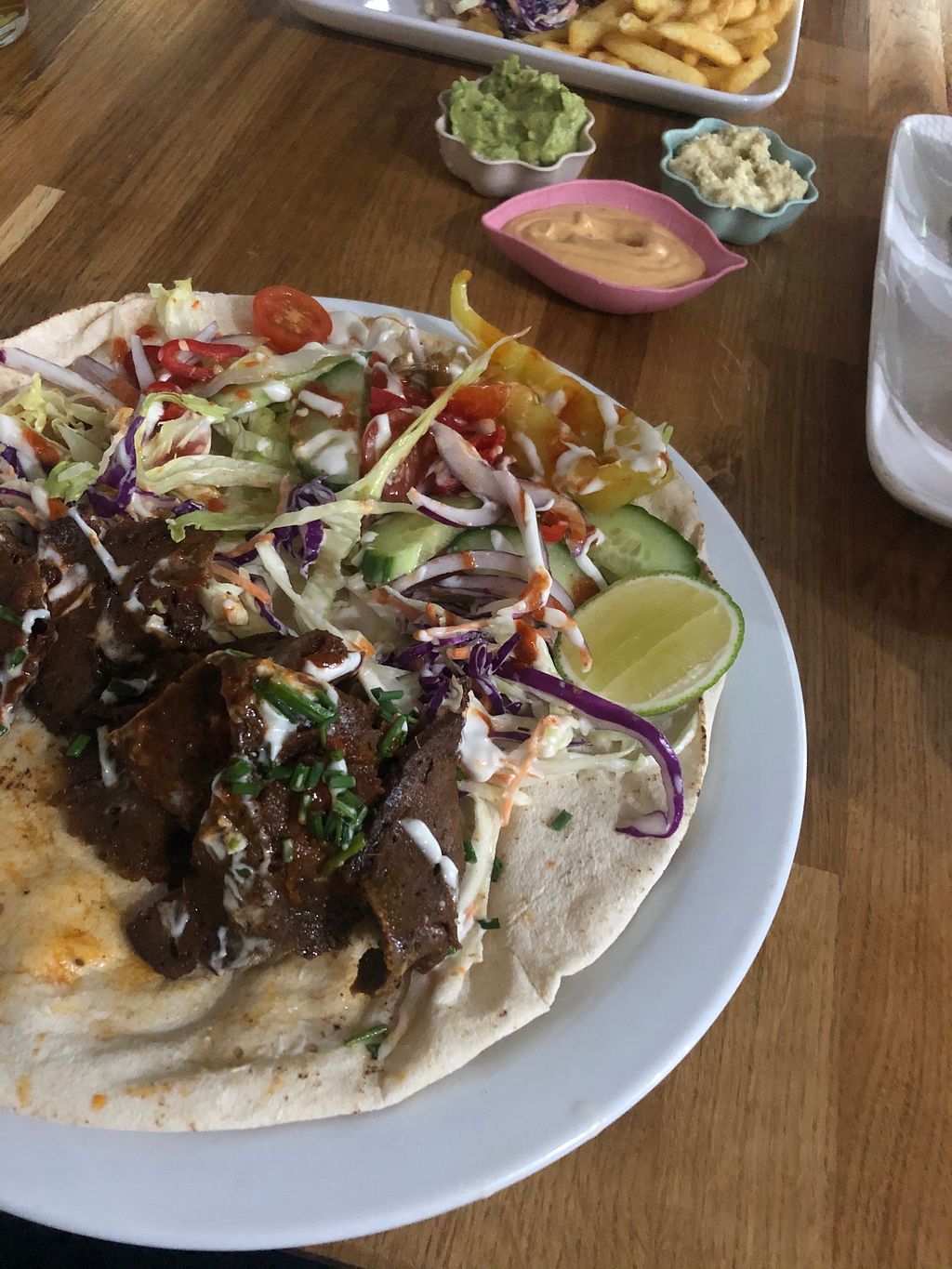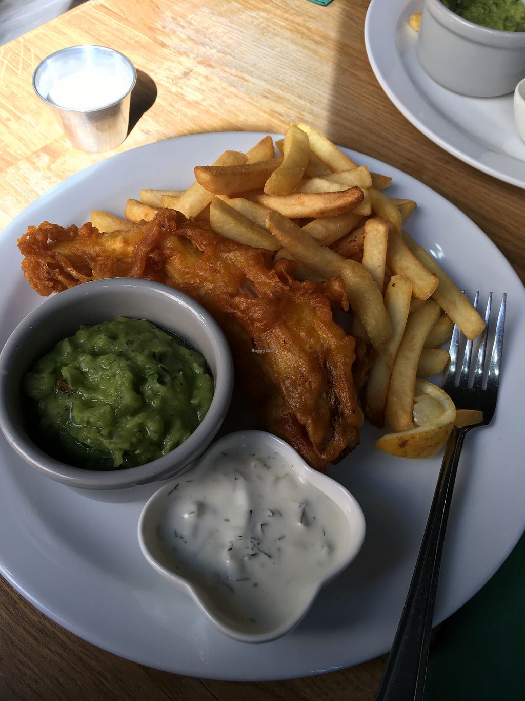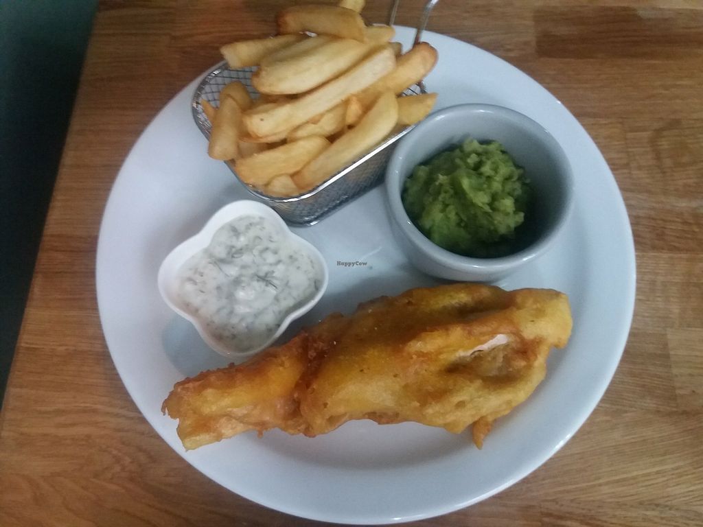 Banana blossom fish and chips with mushy peas and tartare sauce :)