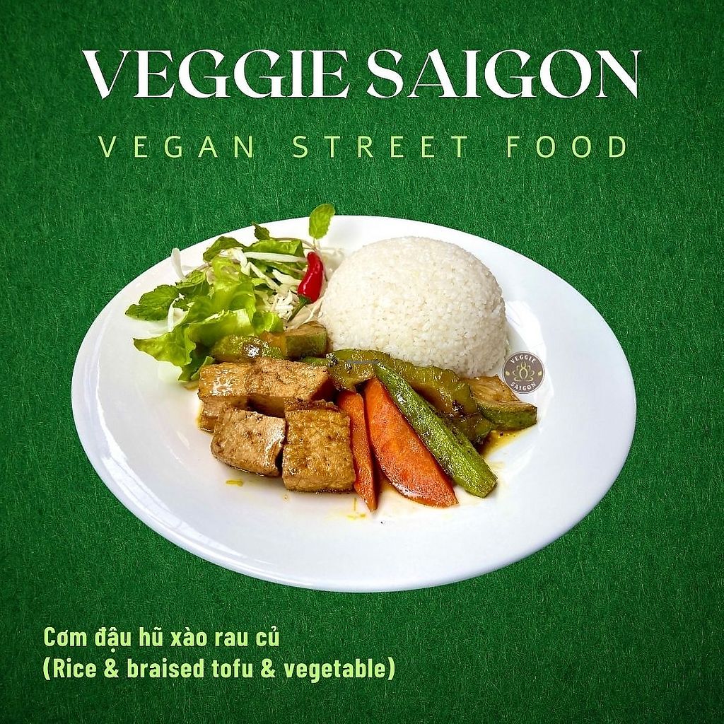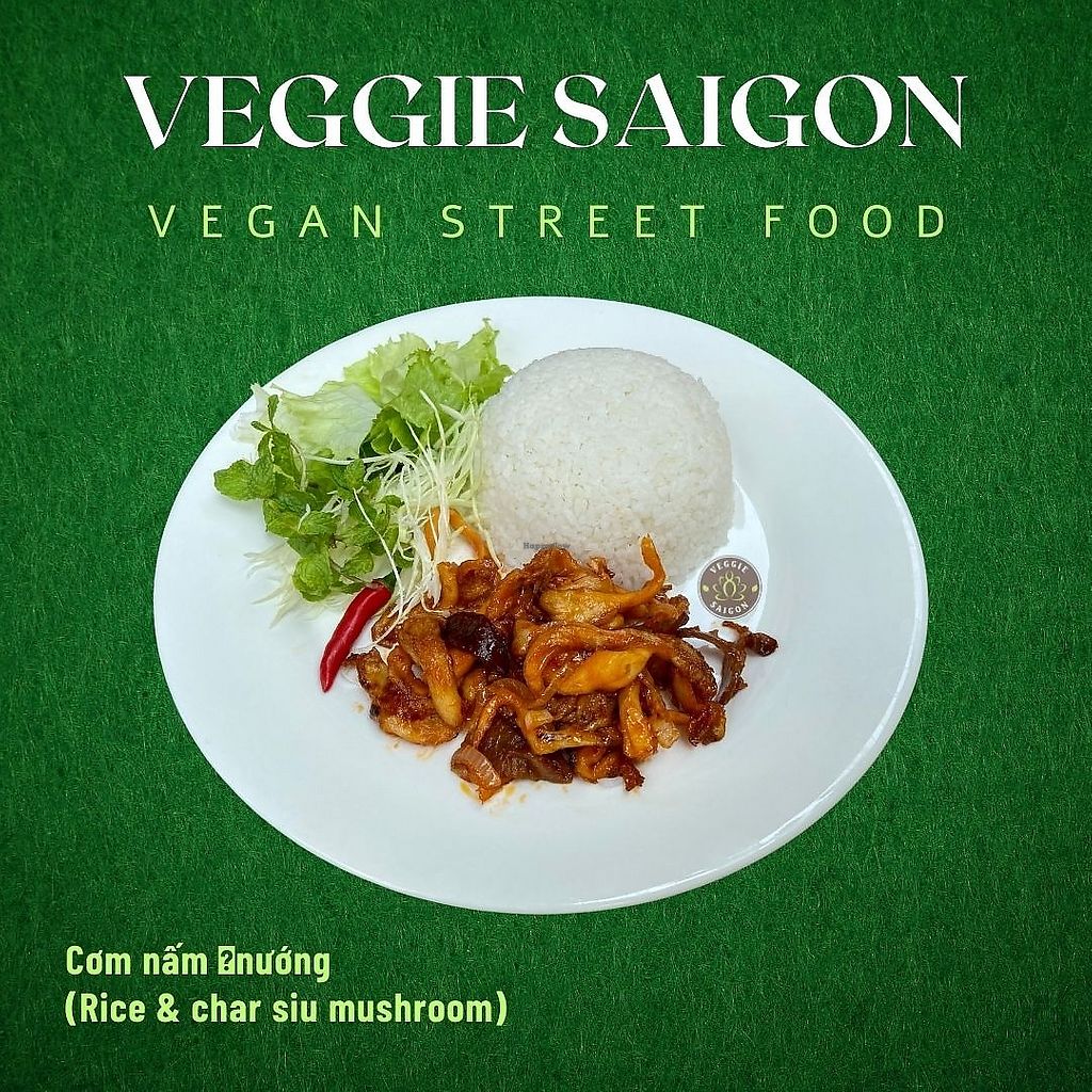 Vegan pork (20,000 VND) with white rice (10,000 VND)