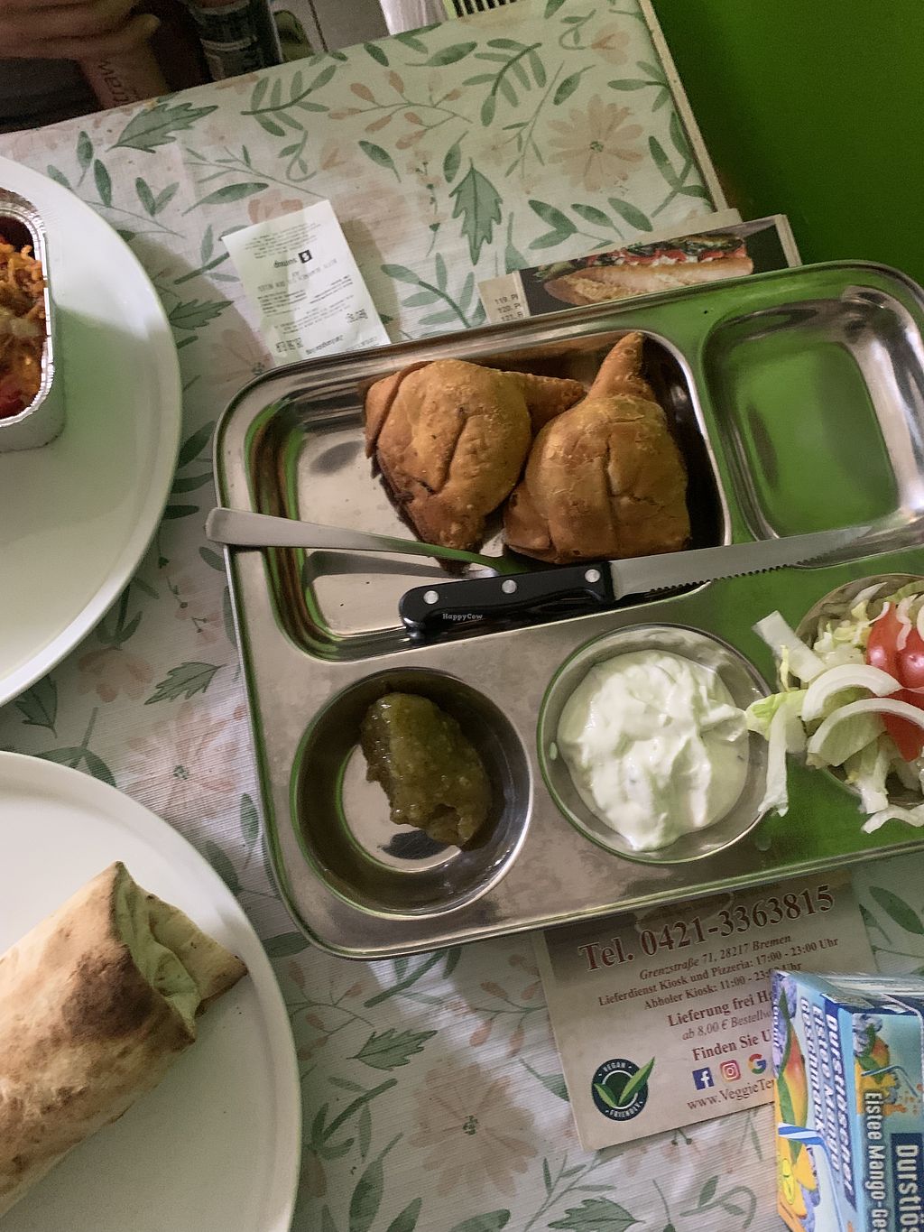 The food was amazing and so flavourful, the portions were huge and to really good prices. The samosa was the best I ever had, the outside was super crunchy and the filling was a good mix not overpowered by one ingredient it was so good. Then we had a vegan/ Gyros rollo and vegan/ stuffed paprika both are as vegetarian on the Menu but you can change it to vegan.