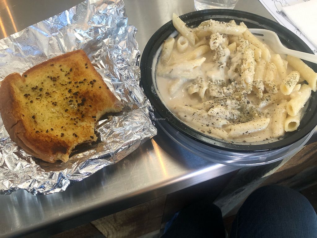 Garlic pasta and garlic bread.