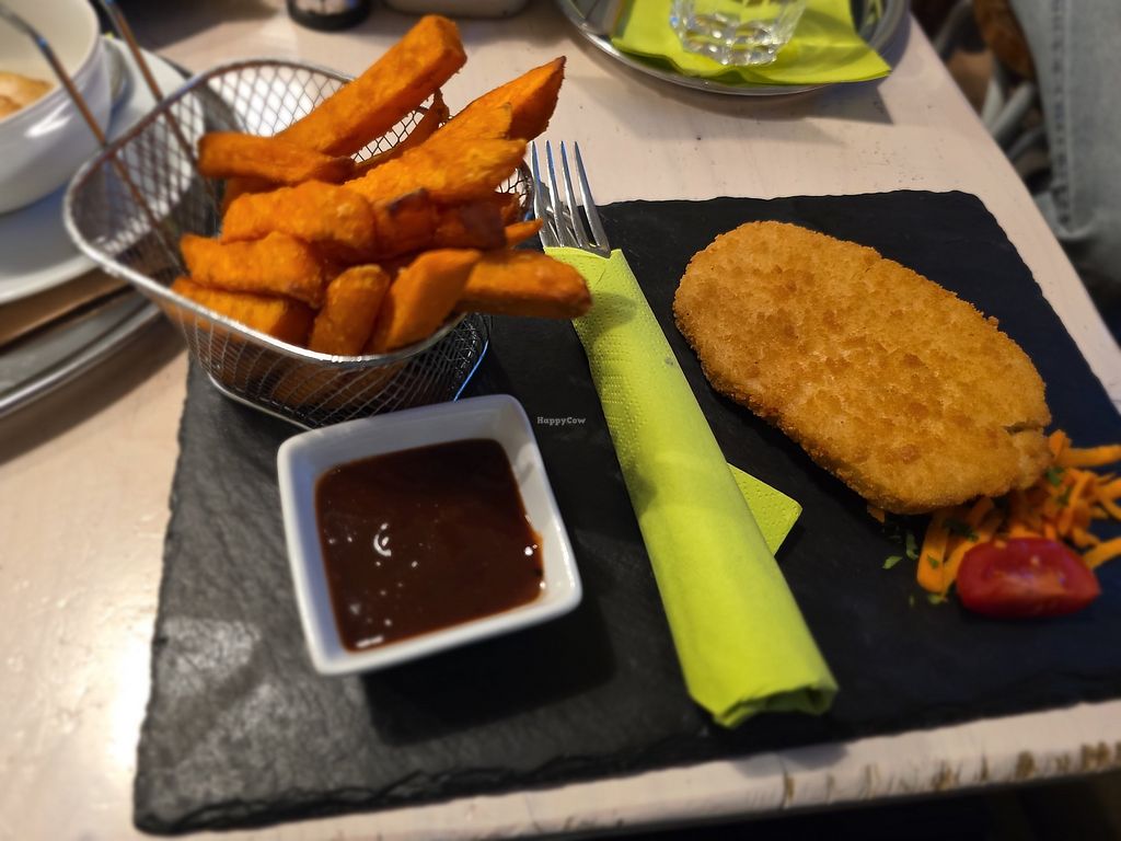 Grünkernpatty war super, eh der ganze Delight-Burger. Und auch sehr gute Pommes. Nur ein Dip könnte inkludiert sein. Sehr netter Raum und toller Service.