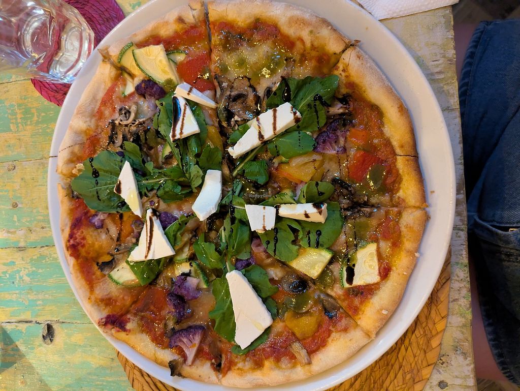 recommended by a friend who lived here recently. everything was fresh and beautifully presented. The vegan cheese on the pizza is one of the better ones we’ve had. My husband, a vegan baker professionally found the tiramisu to be the best he’s ever had. Friendly service, cozy environment. Lots of wine and beer options. Glad we enjoyed our last trip dinner here!