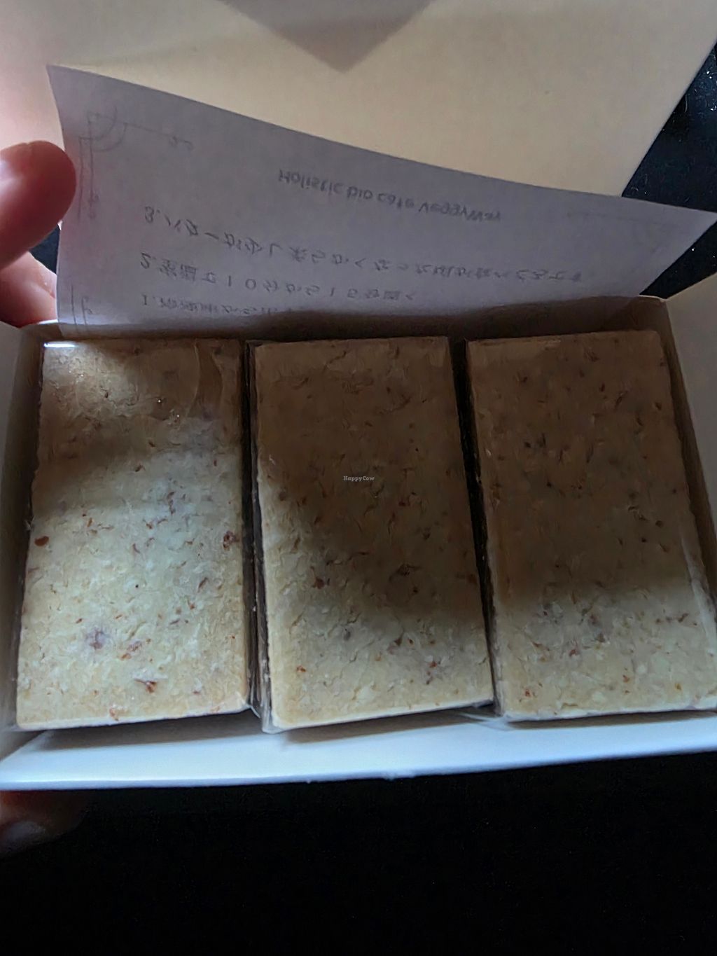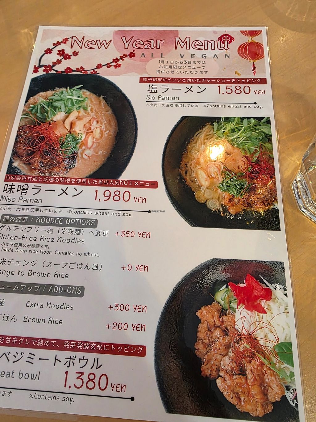 Bowls with soy "chicken", vegetables, and brown rice; salt ramen; miso ramen; small cakes and other backing; and, the soft serve ice cream parfaits! A good spot for lunch. Clean, cozy, friendly staff. Clear menu. Probably one of your best options considering how limited restaurants are vegan-wise in Sapporo.