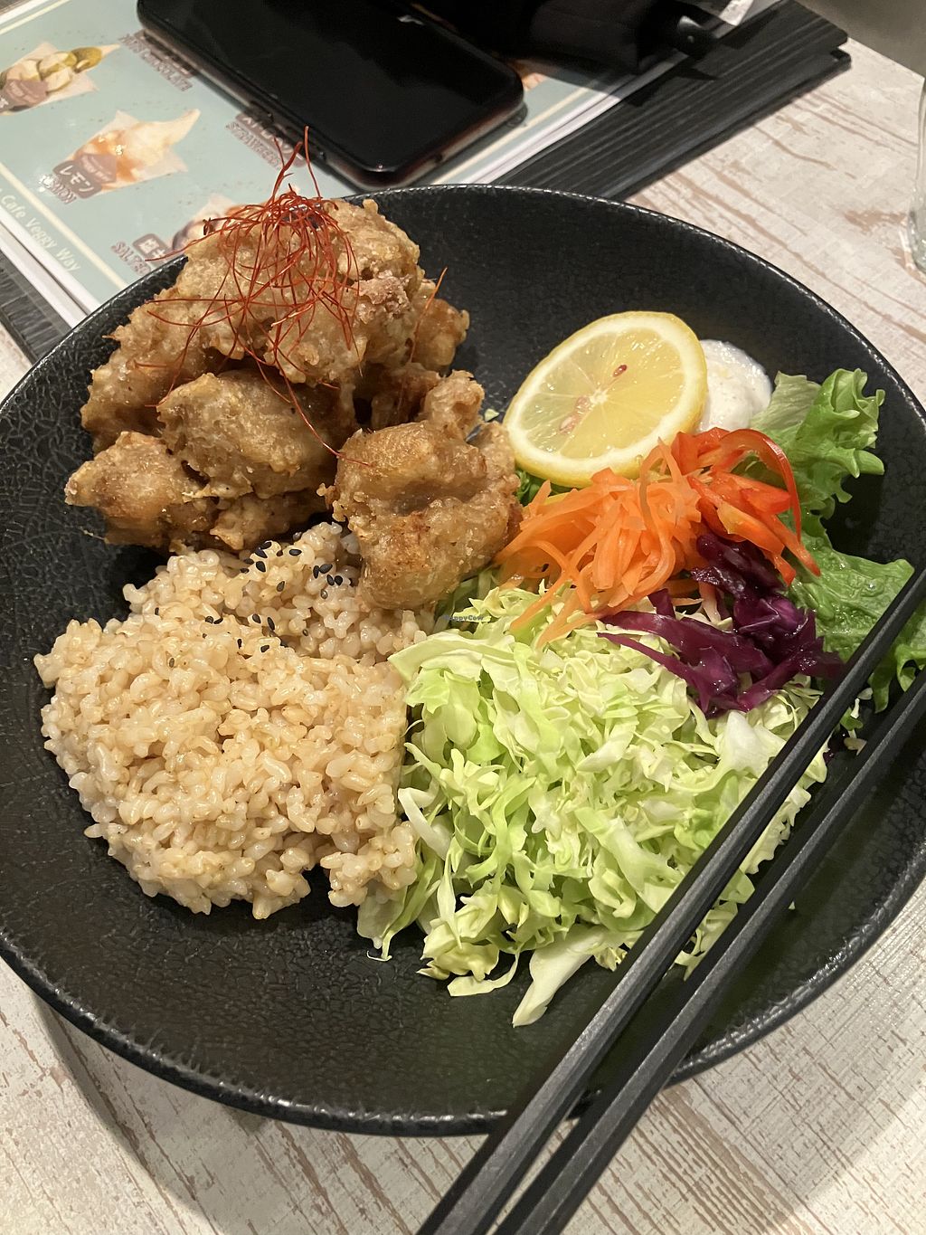 Loved that they tried to incorporate healthy habits into their food. They even have a note about the nutrients in so called “junk food” shown in the review pictures. Finally had soft serve after seeing only dairy based soft serve all over Hokkaido. Very cute interior and nice vibes inside. Some of the menu was only Japanese so if you don’t know it, have google translate ready! Reccomend the “fried chicken” meal and strawberry glazed soft serve. Got 2 Salmon onigiri’s to go. Just wish they had more salmon inside of them!