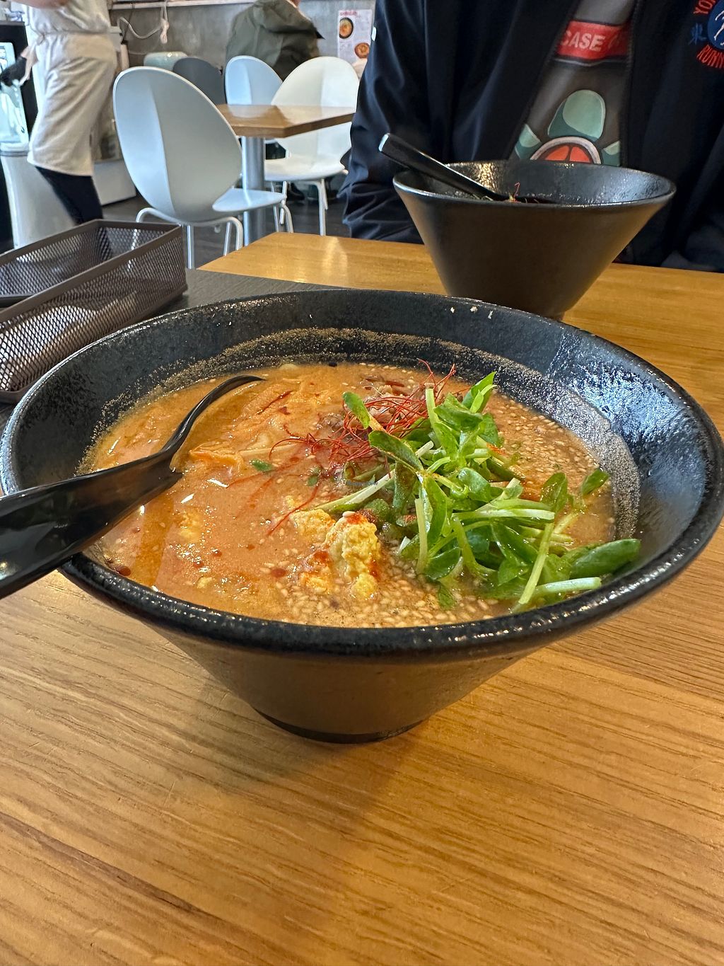 Came on two separate trips to Sapporo since we loved it so much the first time. We had excellent service and were lucky enough to be looked after by a bilingual staff member who is from the UK. We shared one miso ramen and one salt ramen. Both were fantastic and among my favourite ramen during the trip. We also tried the teriyaki veggie meat burger and it was also great. Enjoyed the space and ambiance. I ordered a soft serve cone while my partner had the caramel sundae and I was so jealous that I got one of my own the second time. Also some snacks for purchase. Very very satisfied with everything.