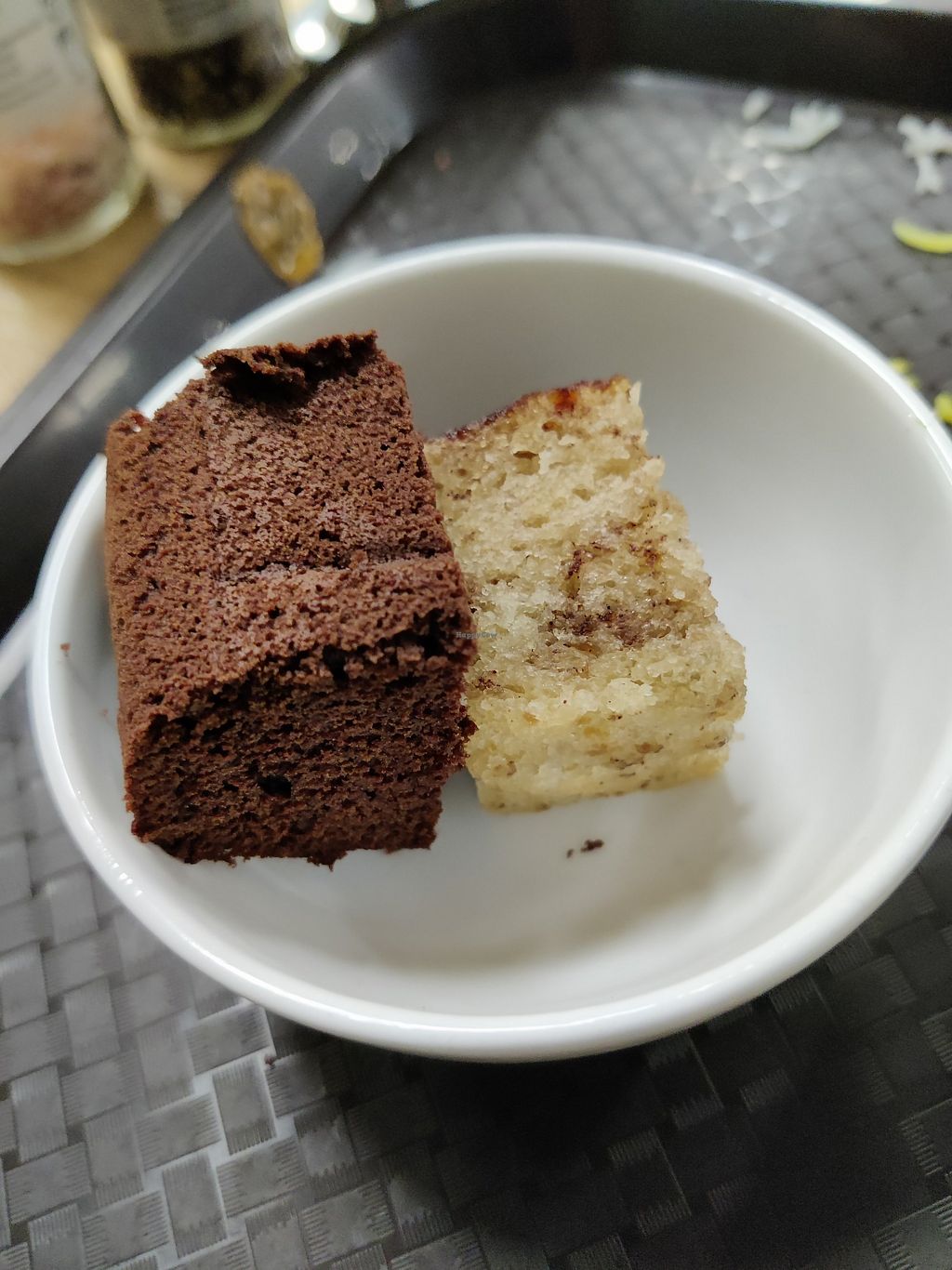 Choc cake with fruit custard
