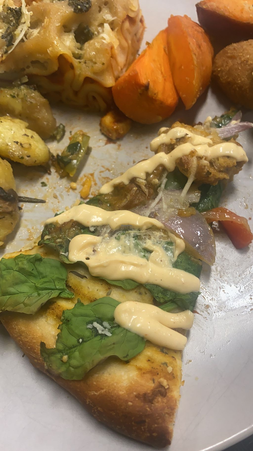 Lasagne, apple salad, roast veg, butter chicken
