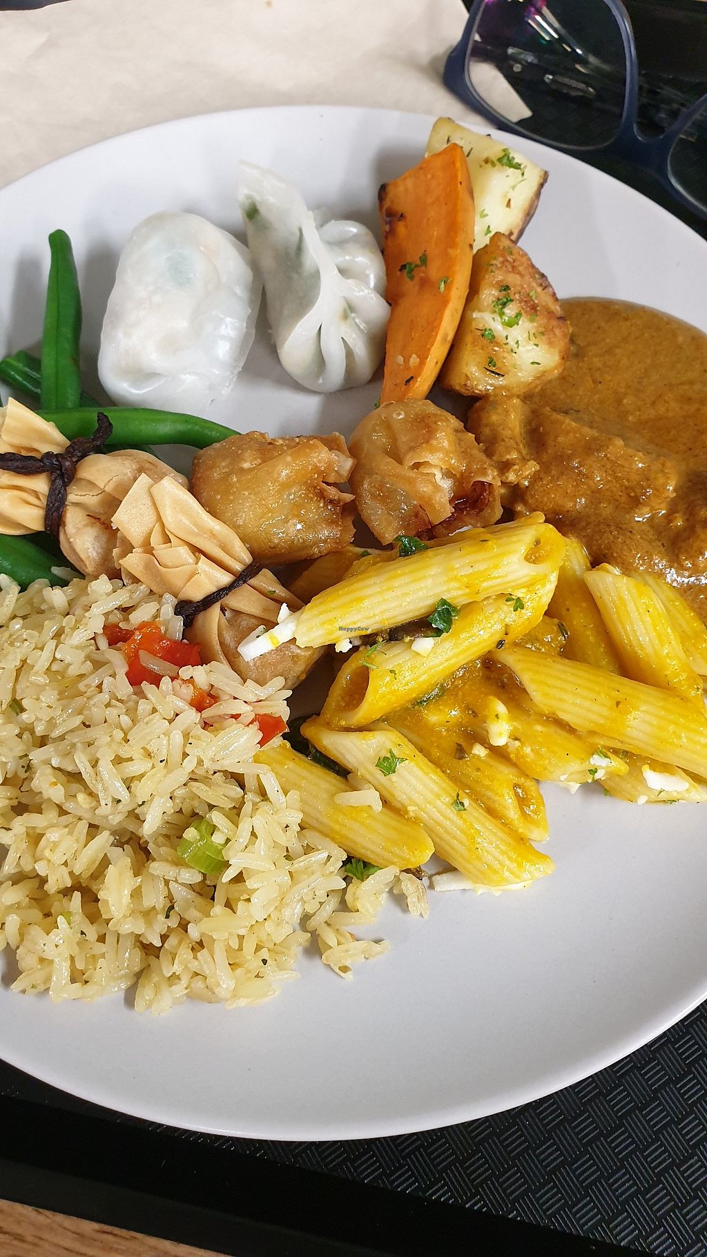 Pizza, lasagne, Chinese noodles and roast veg