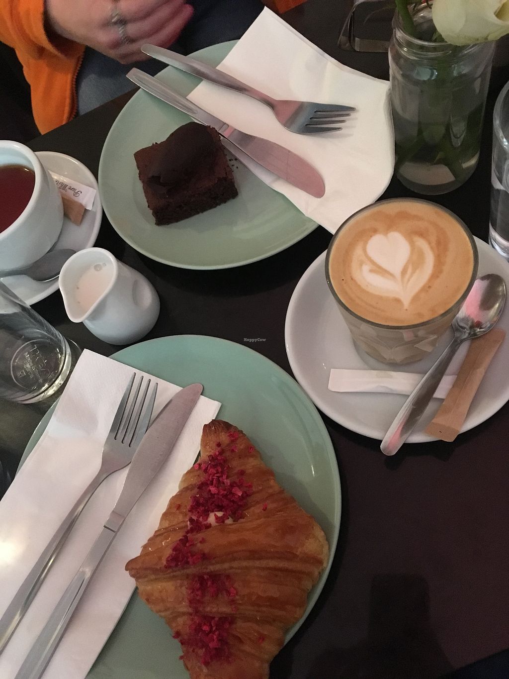 Lemon raspberry croissant, chocolate brownie and oat milk latte