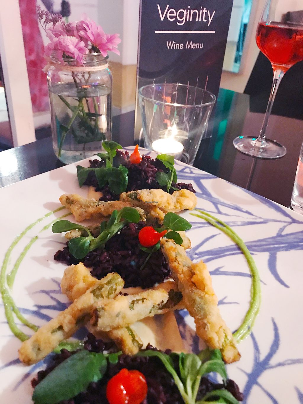 Panko asparagus and watercress, black tay berry rice, Dijon mustard bé…
