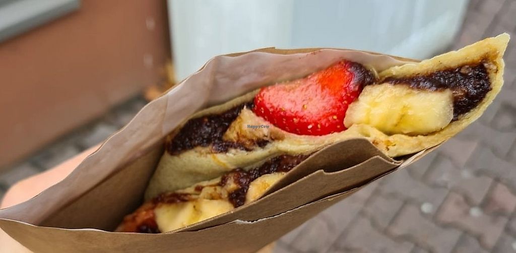 Sweet crepe with vegan 🍫 spread, 🍌and 🍓