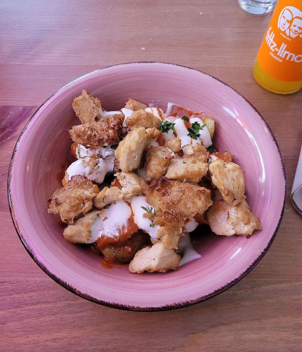 Pita with faux chicken and potatoes with grüne Sose