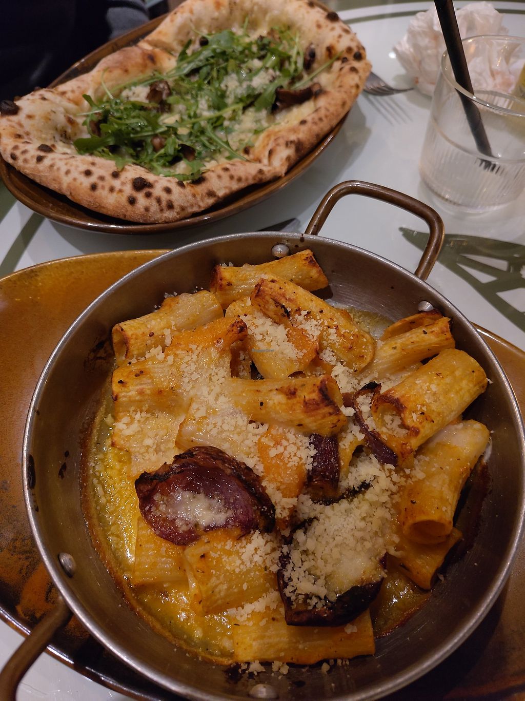 Heerlijk veganistisch gegeten! Super leuk om samen met mijn volwassen dochter het shared dining menu (€ 19,- pp) te doen, houdt in een pizza, een bowl of pasta en een side. Wij hadden als side de asperges.