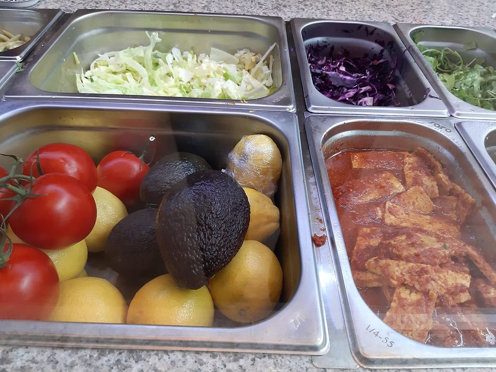 The second outlet of Vegitat in Basel is located in a former vegan restaurant and is in no way inferior to the major restaurant. They offer a variety of fresh and healthy toppings for your wraps or pita, moreover, they have burgers and bowls as well. You have a choice of different toppings like tempeh, seitan, cigkofte (even with lentils, very tasty!) and different dressings. The portions are satisfying and the prices are fair compared to local standards. There are plenty of seating options and the staff is fast and friendly.