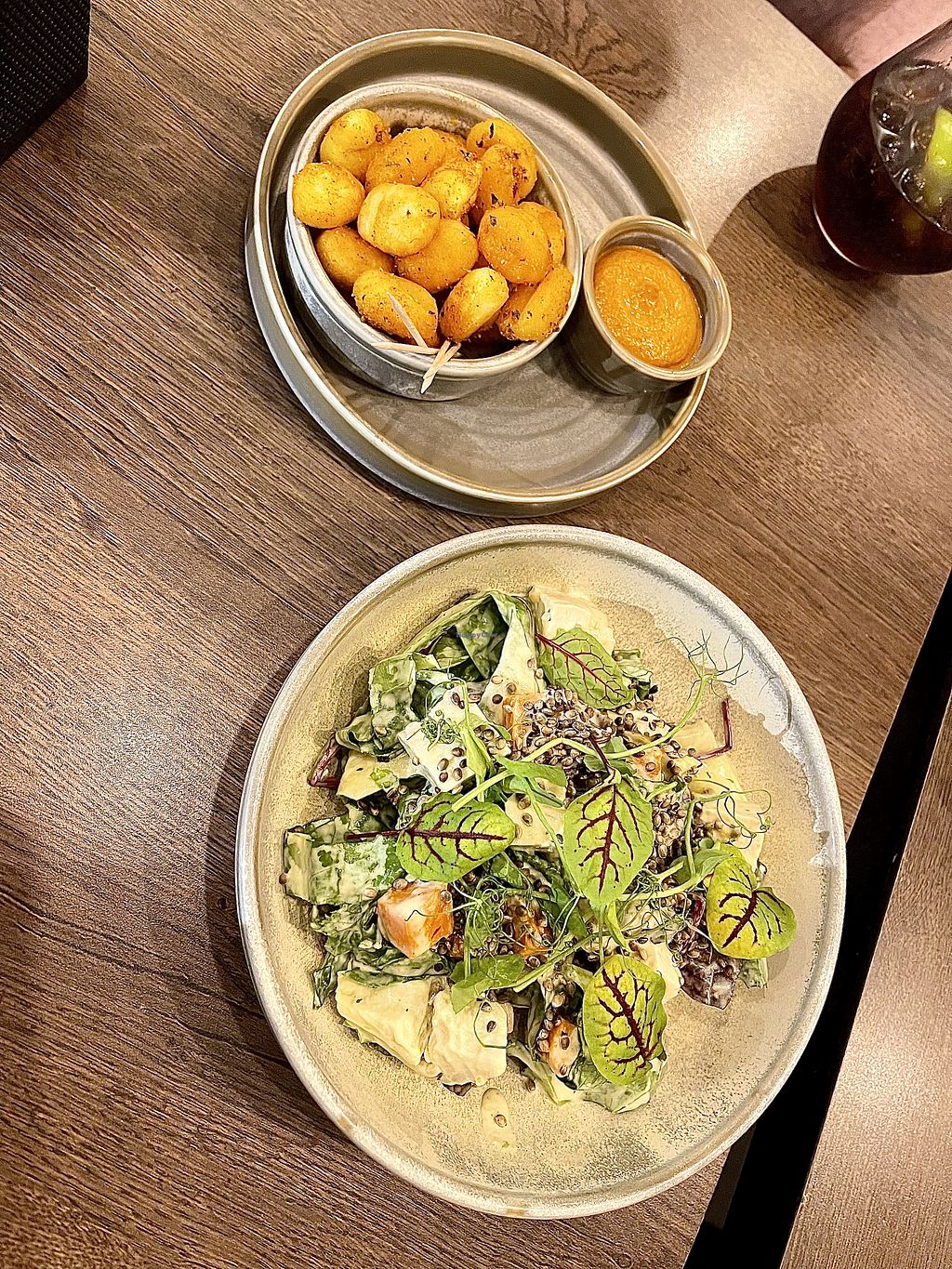 Jerk bowl- jerk jack fruit, slaw, plantain, rice, chilly jam & salad. …