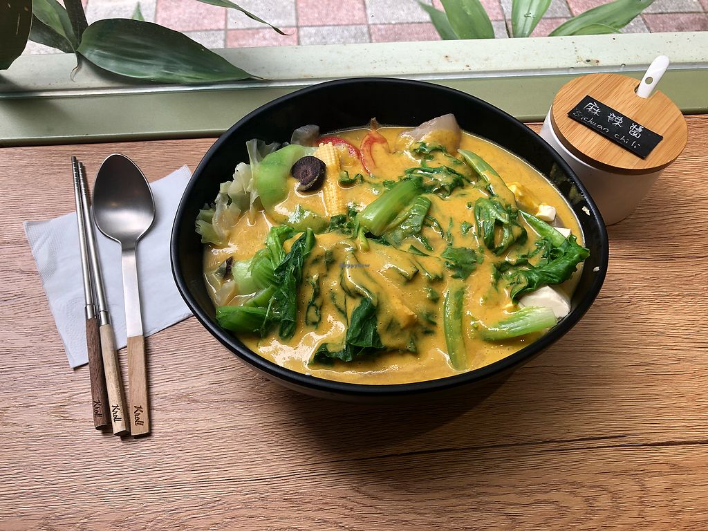 This small vegetarian restaurant offers noodle or rice bowls to eat in-house, take-out and delivery. Staff are friendly and the environment is clean and relaxing. There are three sauce options for your bowl: original, Sichuan spicy and (not spicy) curry. When I said I like curry but I like spicy the manager suggested I order the curry and then add some Sichuan chili paste, which worked perfectly. For protein, I add the tofu and tofu skin, but asked for no egg, normally served with the tofu option. There was a generous amount of vegetables - and tofu and tofu skin - to go with my noodles. It was a perfect fortifying veg lunch.