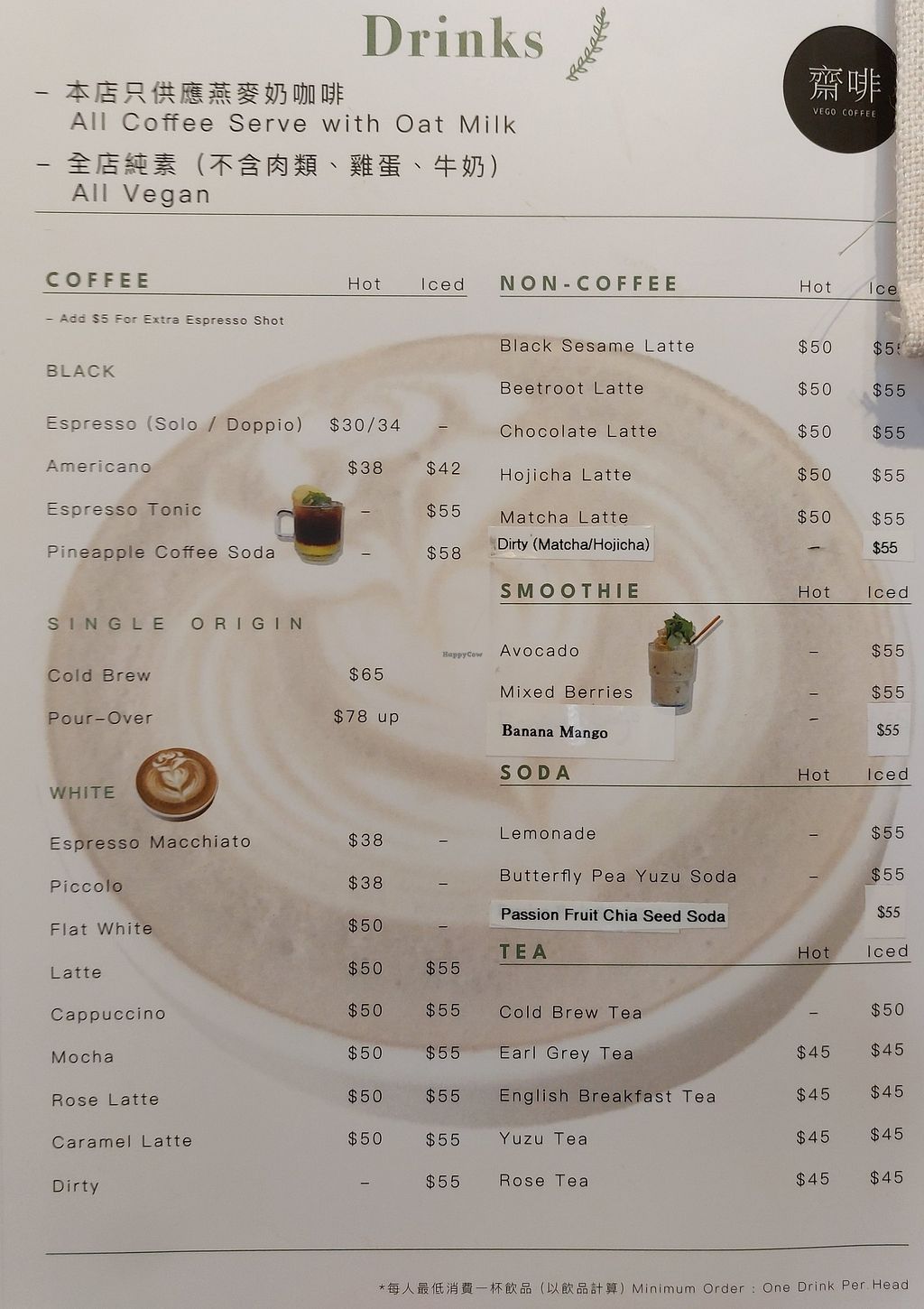 Hojicha Latte (Left) (Vego Coffee will be closed permanently. Last day…
