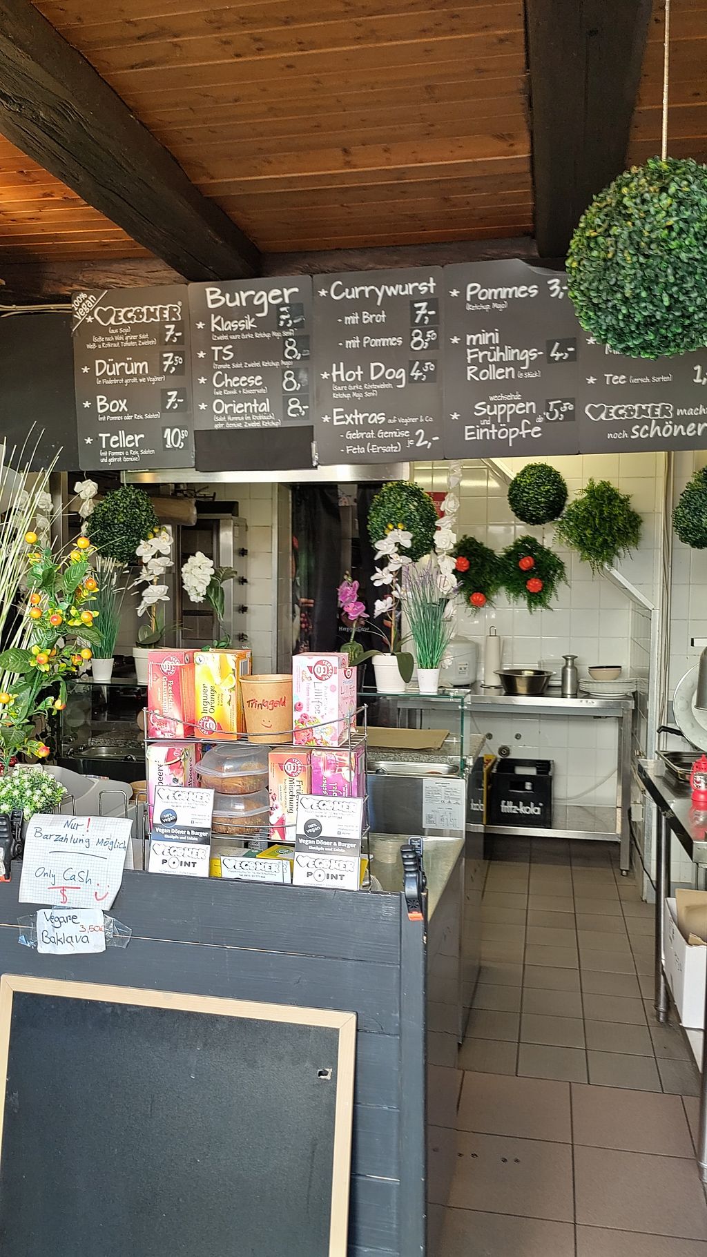 Komplett vegan, leider keine Barzahlung möglich - Einrichtung sieht wild aus, hat aber Charme und das Essen ist gut.