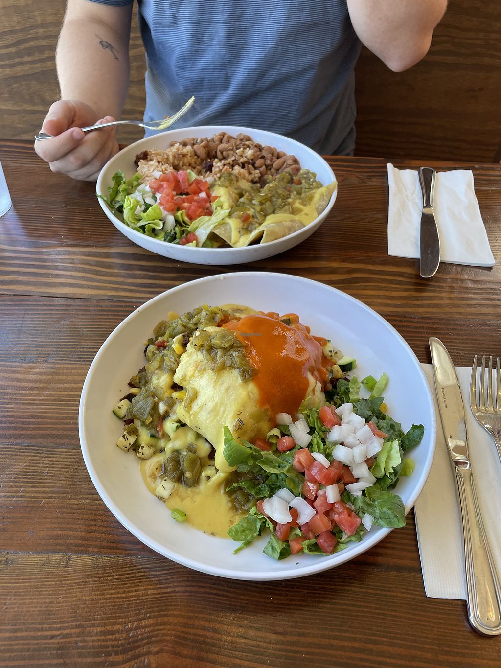 I got the Enchildas with grilled tofu and my partner got the Loco Tostaritto. Both were unreal.