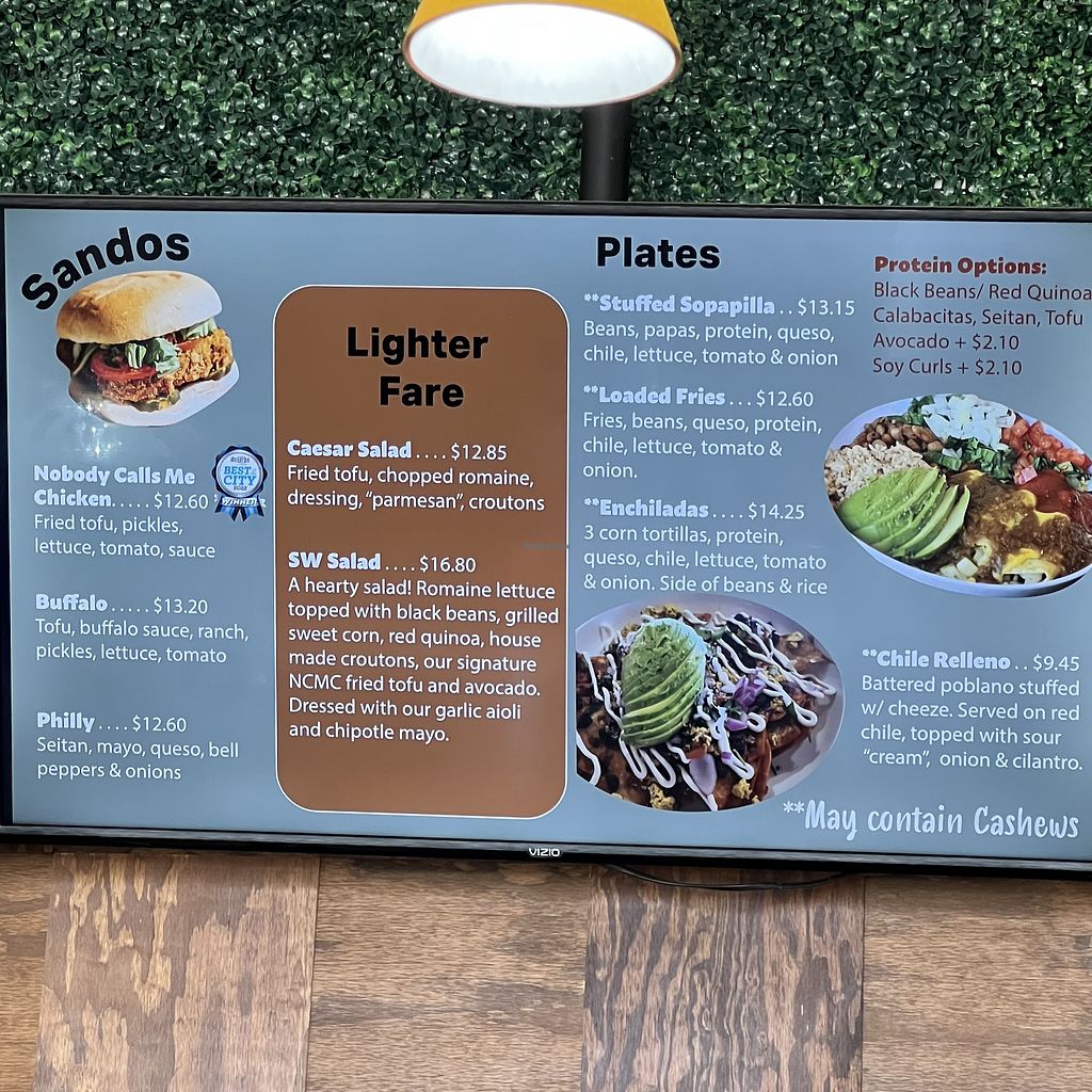 Fully vegan food truck turned brick-and-mortar specializing in New Mexican cuisine. Menu includes sandwiches, various burritos, enchilada plate, sides and more. Sister shop is Nobody Calls Me Chicken which is also located at this address. Relocated from 4003 Carlisle Blvd NE. Open Wed-Sun 11:00am-8:00pm. Closed Mon & Tue.