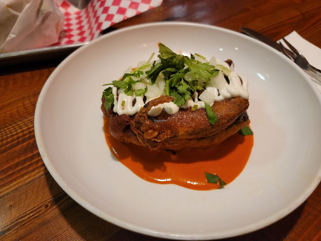 Had the stuffed sopapillas with seitan and calabacitas and green chiles. Delicious, spicy, truly unique flavors I haven’t had anywhere else. Highly recommend!