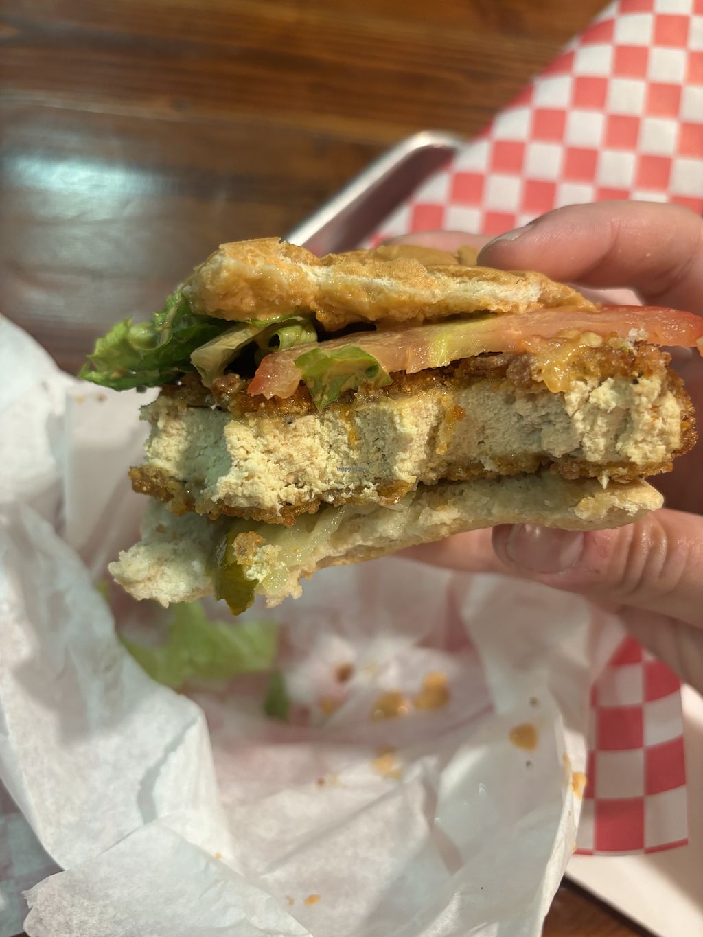 I had the buffalo sandwich, it was super tasty and the chick’n texture was on point! Sadly my sandwich wrapper soaked through leaving my hands a saucy mess, so I had to eat quick.