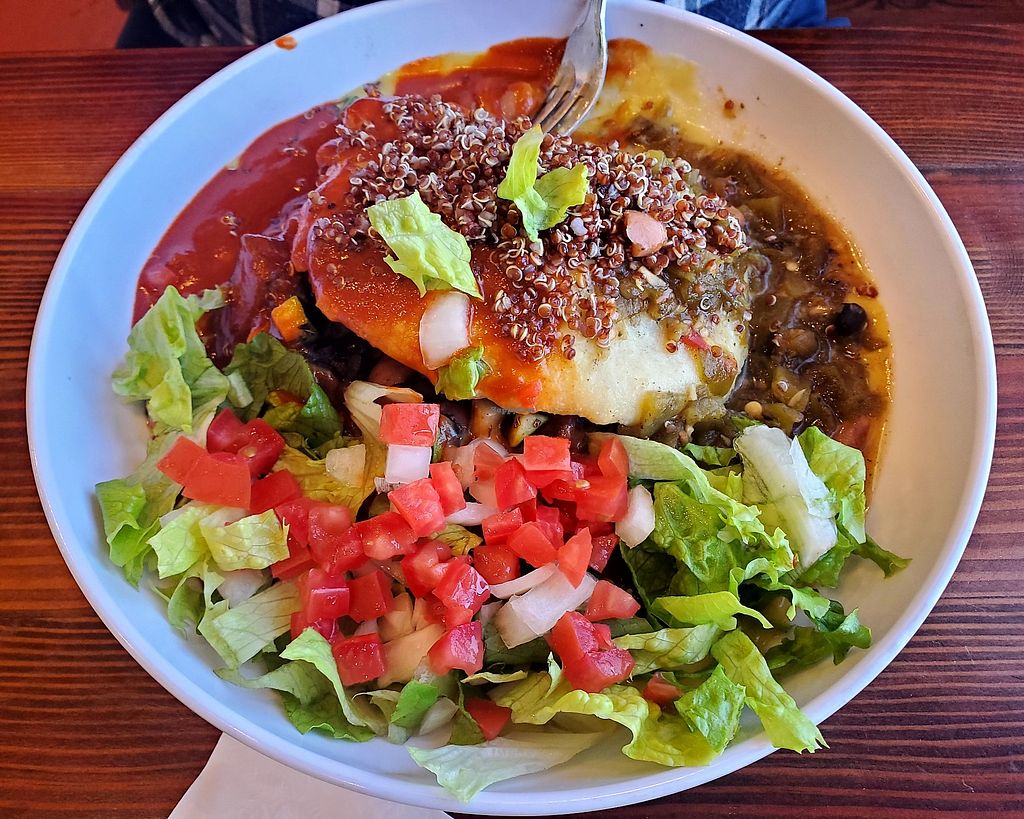 The enchiladas were so good I went back the next day to get them again! Had the gfo calabacitas & grilled tofu enchiladas plate w green chilies, absolutely delicious! Staff was super friendly and it was really quick too. I took mine to go and had a picnic at the park down the street, but they do have tables inside and out. Will definitely go back next time I’m in ABQ - by far the best vegan restaurant in the city!!