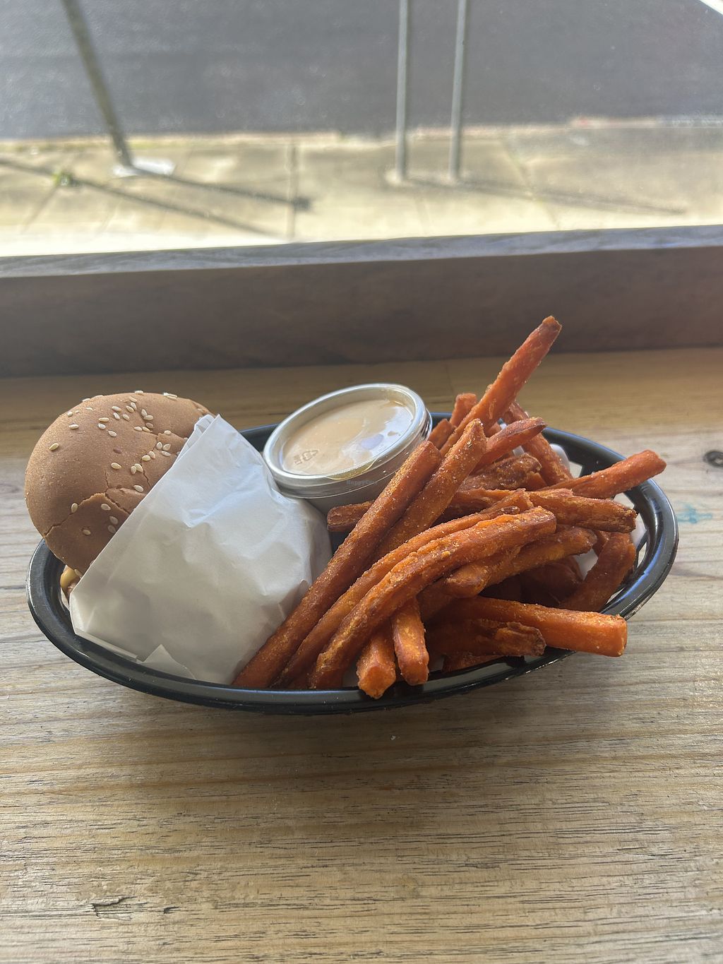 Vegan cheeseburger and fries $15~