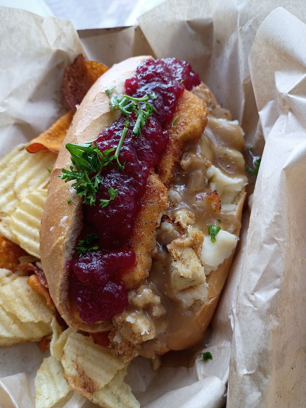 Fully vegan spot with a pretty extensive menu given the small space. My husband got the Gobbler special (Thanksgiving on a bun) and I couldn't resist the Buffalo Pierogis. Everything was great. We also had to indulge in a milkshake. They do a rotating special shake each week.