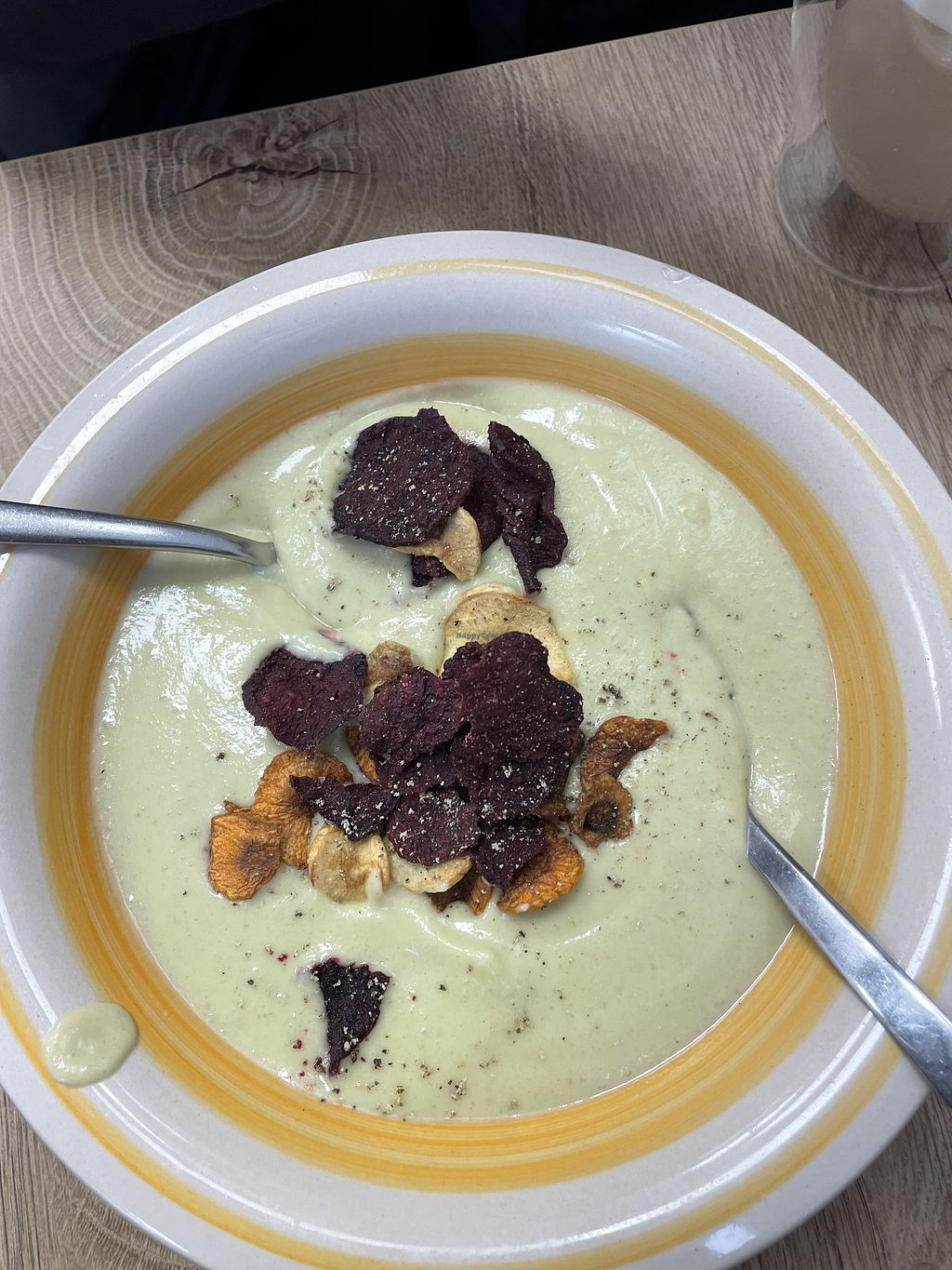 It was delicious! The coffee was smooth and the platter was amazing. Every dip was delicious and the veggies and bread were so fresh. A must visit and great to support a new business!