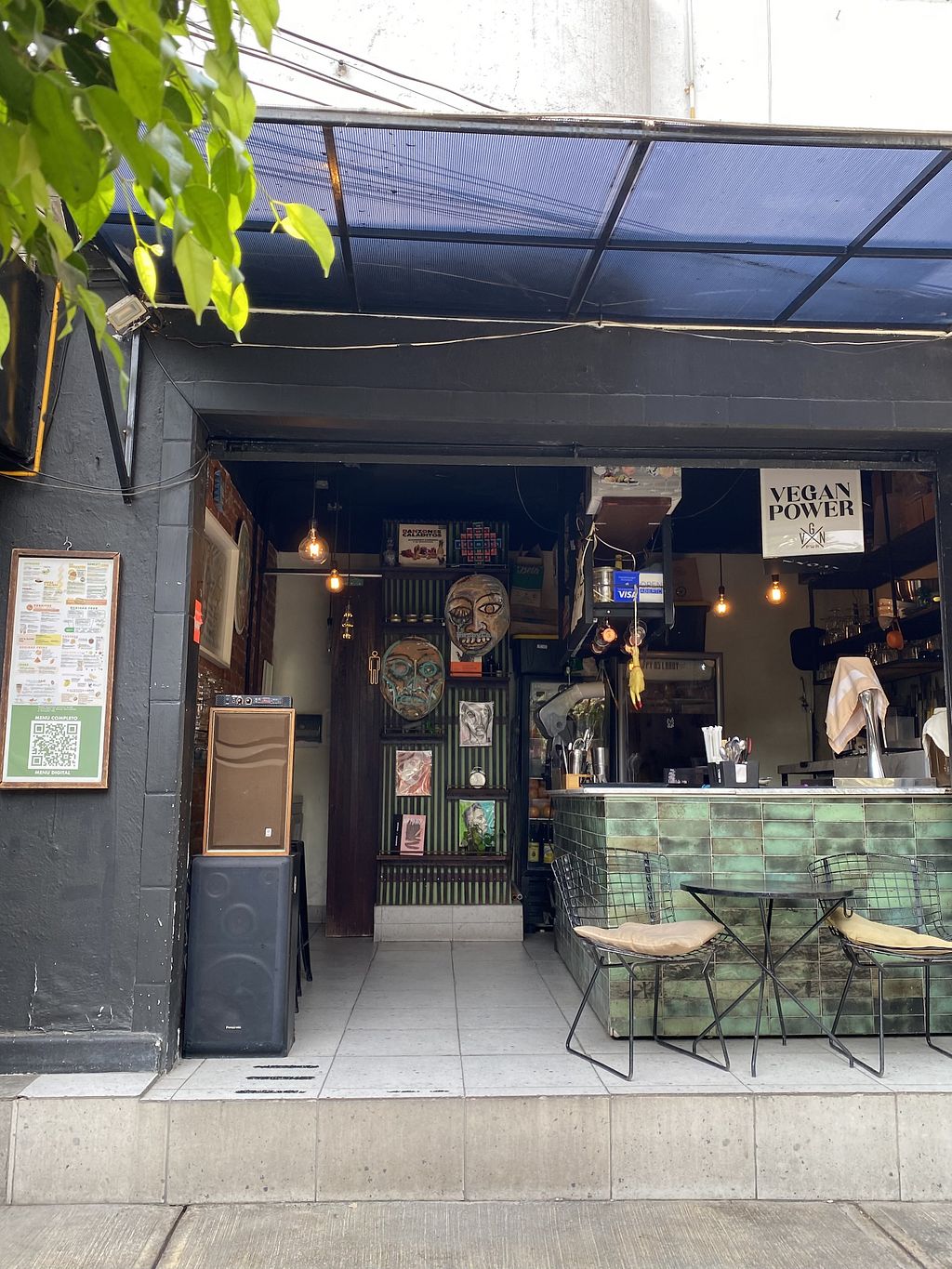 All vegan with all outdoor seating underneath a canopy of plants. Really cozy atmosphere and attentive service. We tried the Al pastor burrito and the chilaquiles. Both were excellent and quite spicy! Really great depth of flavor to the sauces and the vegan cheese was so tasty and as close to cotija as I’ve had since going vegan. We went back for breakfast the next day and tried the Mr. Brown and Taro and Berries smoothies, which were so-so. The berry smoothie didn’t taste much of taro and was really icy. The Mr. Brown was too bitter.