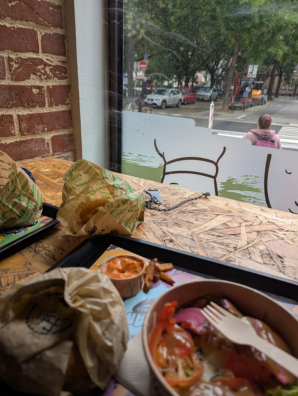 There are a wide variety of vegan burger options. We ordered the 'chicken n bacon' and the 'fakir'. Both were really tasty! The fakir in particular had really unique flavours with curry sauce and lentils. I would highly recommend! The fries were also really nice as a side.