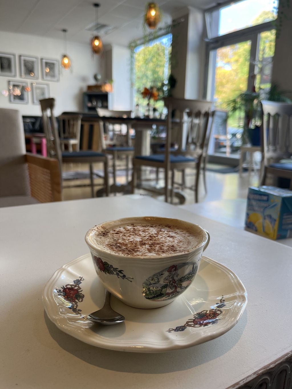 Hier gibt es Matcha, Café, Mocktails und Säfte. Auf Nachfrage gibt es sogar veganen frozen joghurt (freu!) und vegane Toasts. Je nach Sortiment gibt es auch Kuchen/Gebäck. Auf jeden Fall bekommt man immer was leckeres zum satt werden😄Die Atmosphäre ist super angenehm, es gibt viele Tische unterschiedlicher Größe, außerdem gibt es Spiele 😄 Positiv aufgefallen ist mir auch die Auswahl an pflanzlicher Milch (u. a. Hafermilch, Sojamilch, Mandelmilch. Kokosmilch)