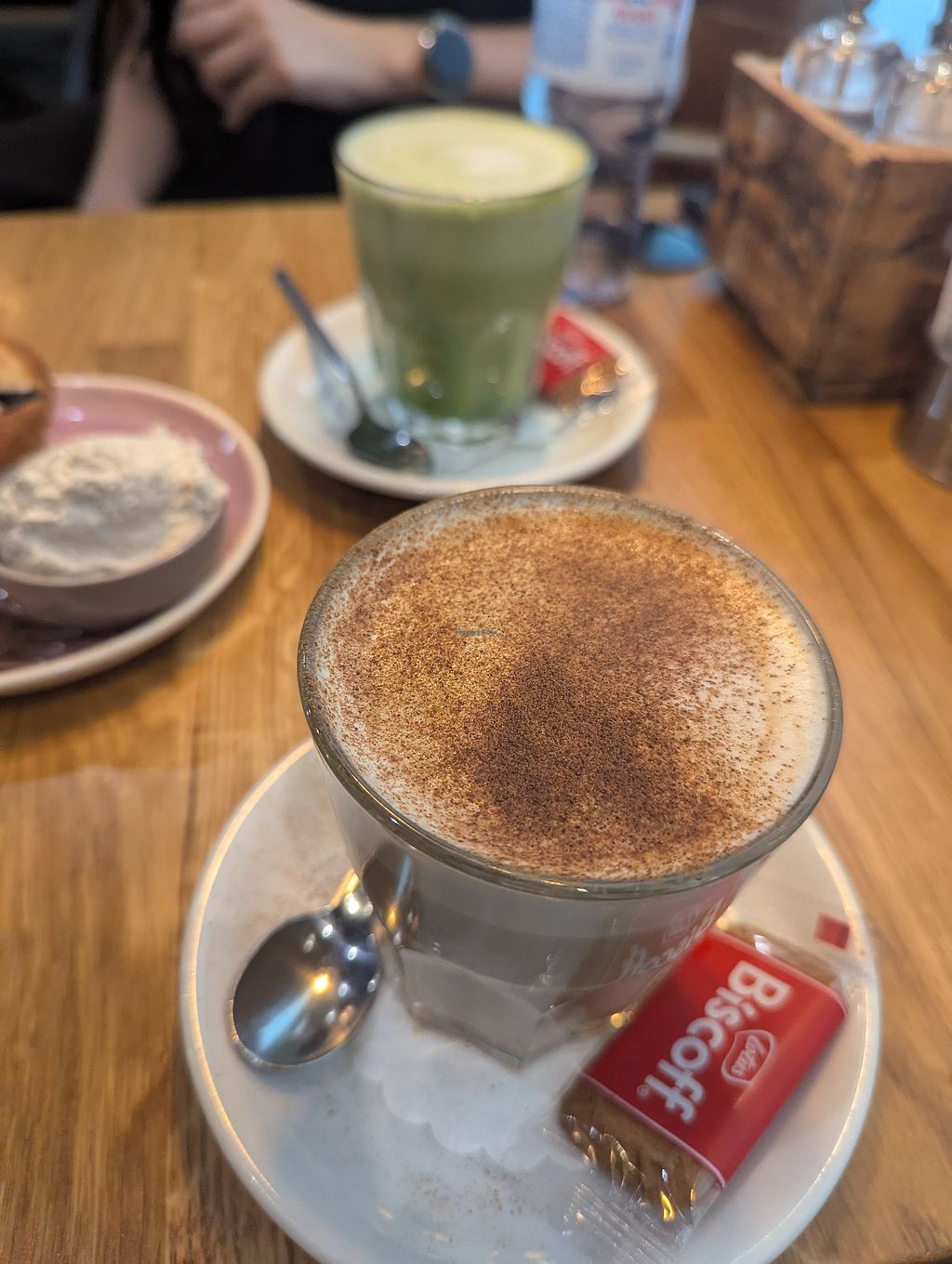 Sweet Café with stylish interieur. Many vegan and vegetarian choices. Outside sitting options. Had a Chai Latte with oatmilk that was good but not delicious.