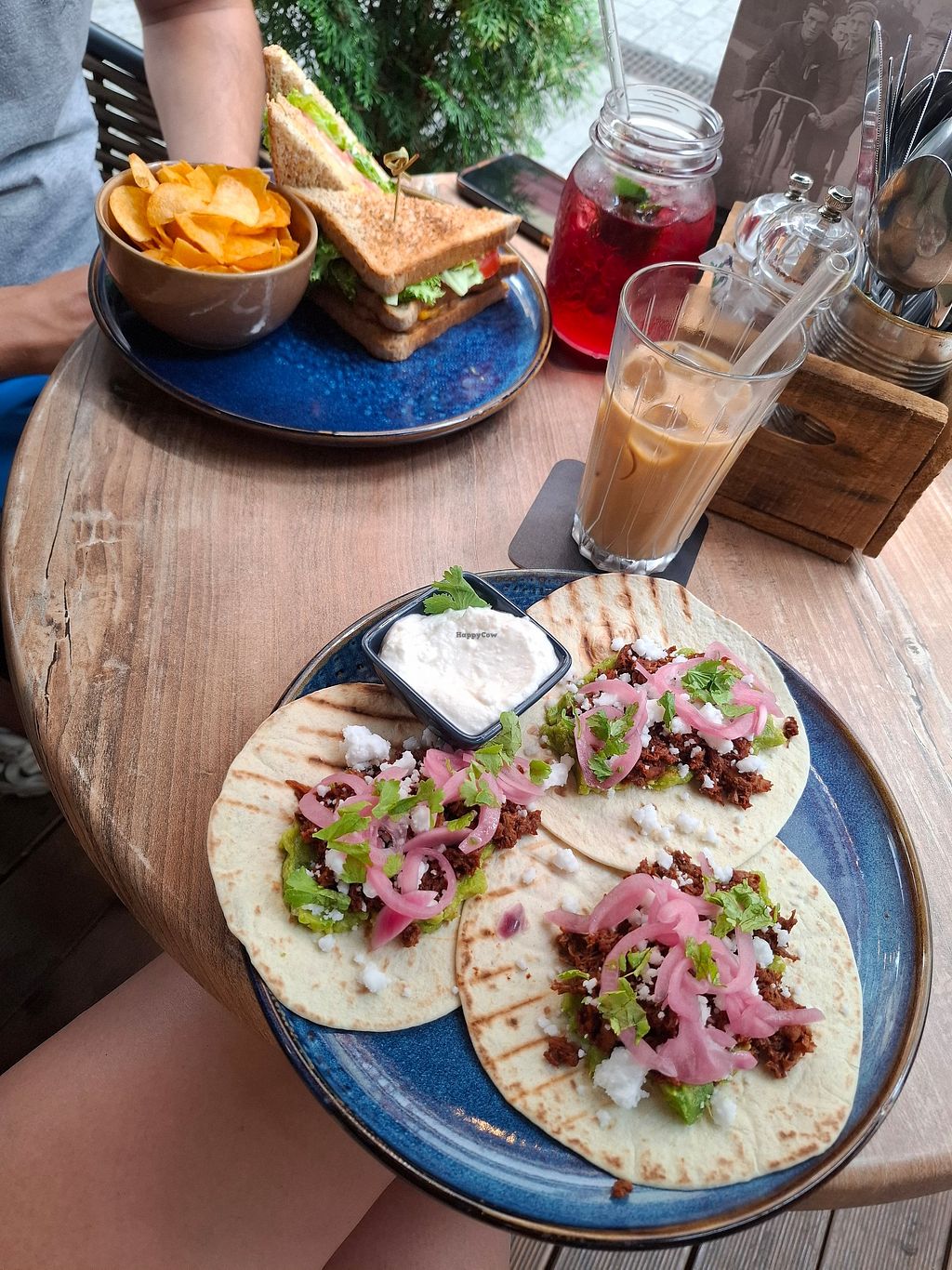 Lovely cafe with nice decor and great music. Lots of vegan options. Ask for dressing on the side for salads and side salads. The bottom half of our salads were inedible as they were drowned in so much dressing!