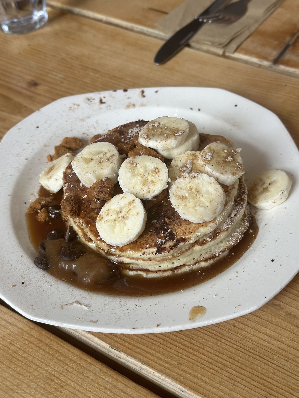 We went for a scone with the soup of the day as well as a blueberry pancake that looked amazing and tasted good.