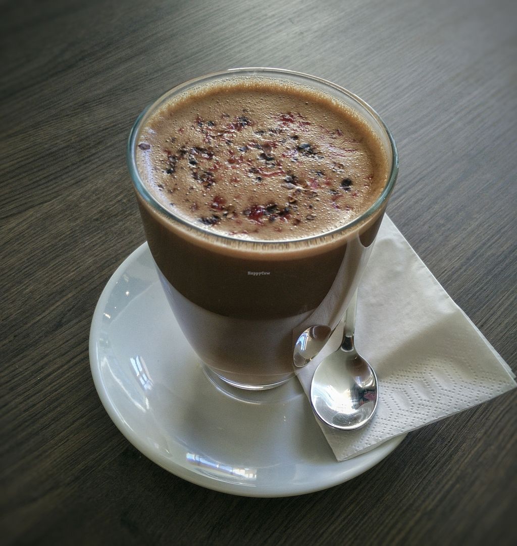 Read moreFriendly staff, nice atmosphere, clean, great fast food, delicious raw cakes and coffees -- you must go there. Me and my boyfriend tried onion soup, crush burger, v-joy burger, nuggets, lupin coffee, raw chocolate&coconut cake. Everything was delicious. It was a little difficult to identify because they didn't put the name VENJOY outside (I think it's because the place is new), but it's in front of Hansaring tram stop (near to a bakery in the corner), easy to go and easy to get.