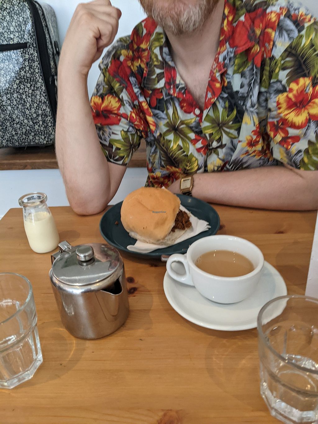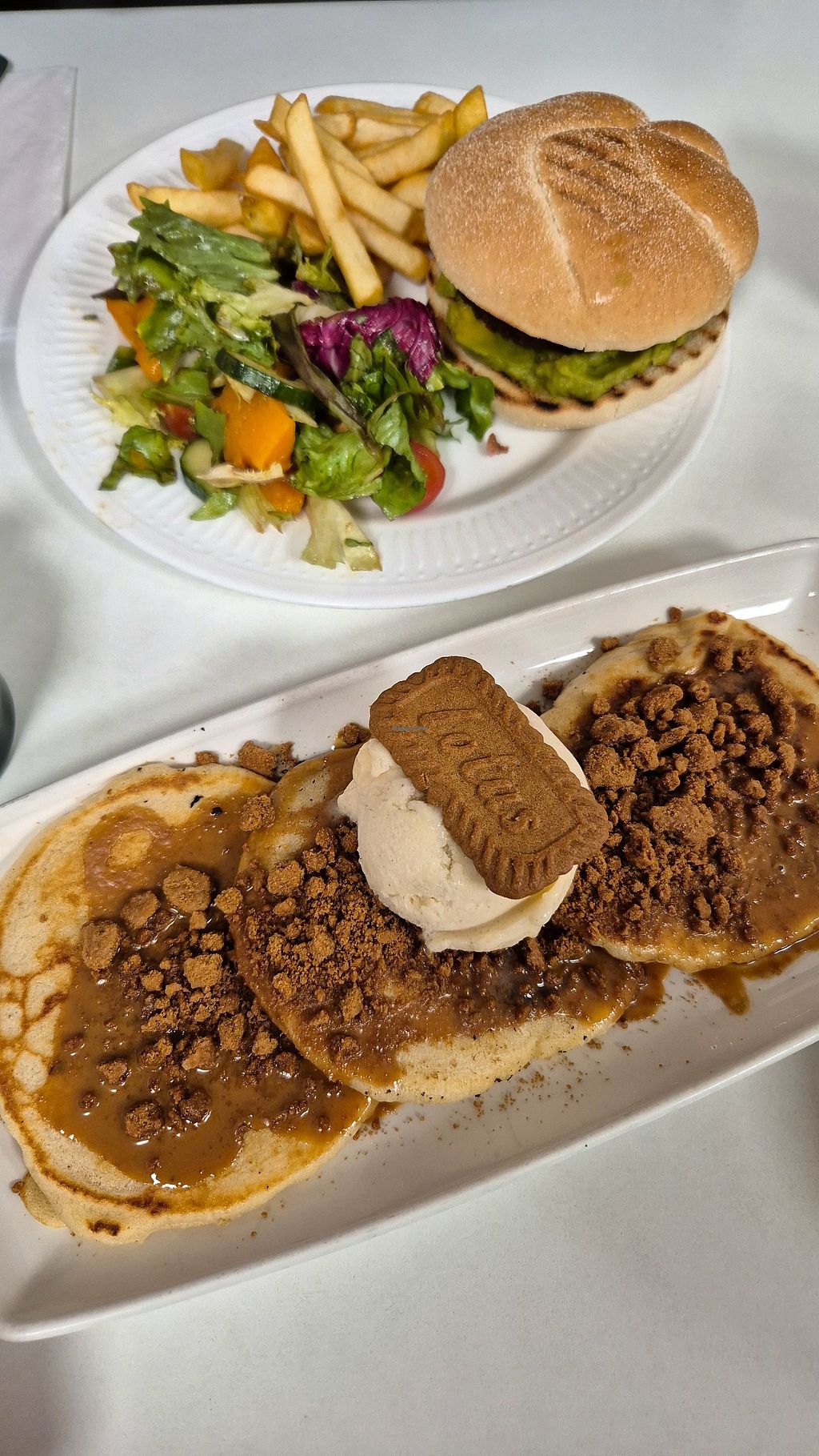 Spread including vegan burger, vegan hash, smoothie and milkshake