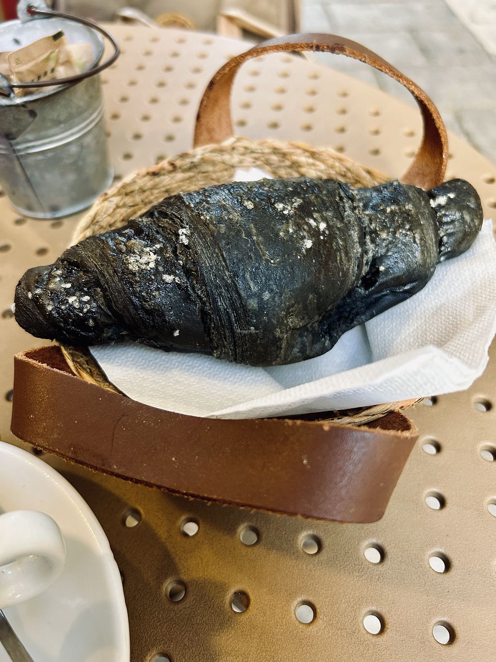 I took two vegan croissants to go; one charcoal and one whole wheat with raspberry jam. Both were delicious if perhaps a tiny bit sweet. Fair prices though so a good breakfast option! Didn’t try the sandwich..