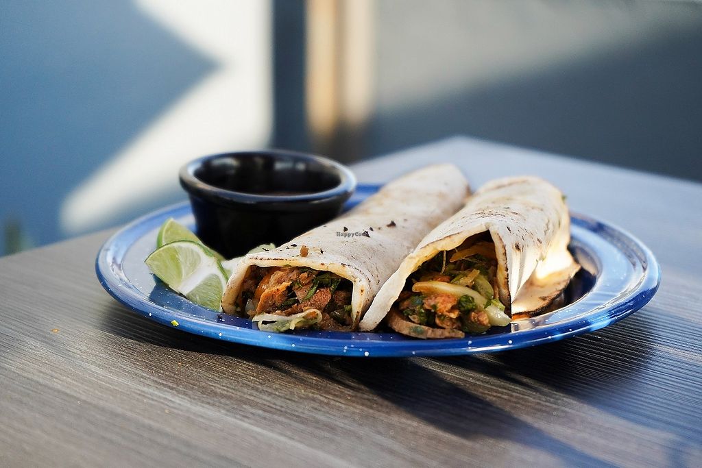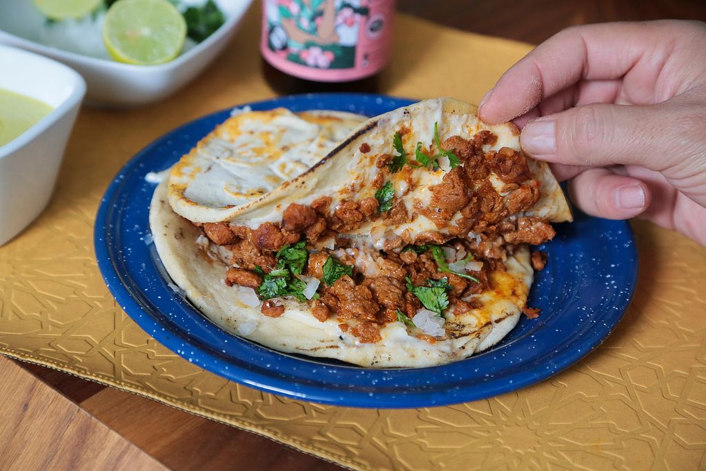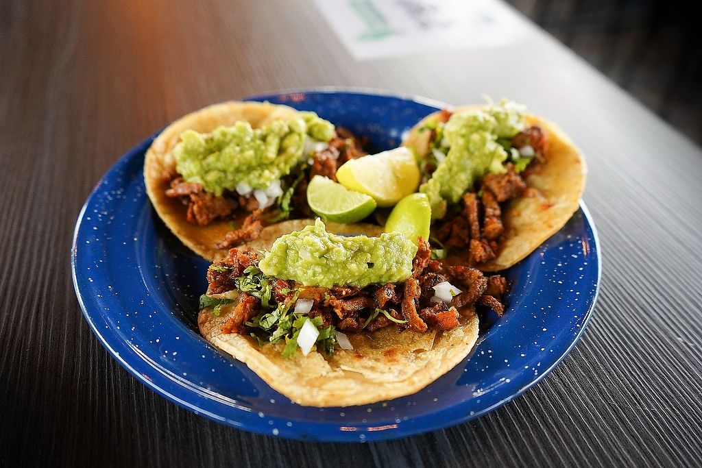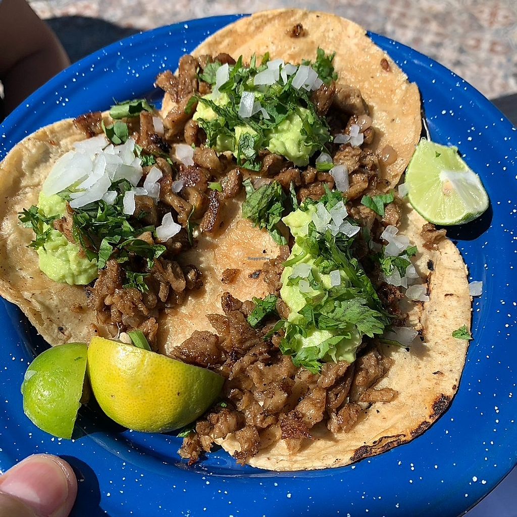 "Los de siempre" Seitan-based tacos (beef style) with guacamole, cilan…