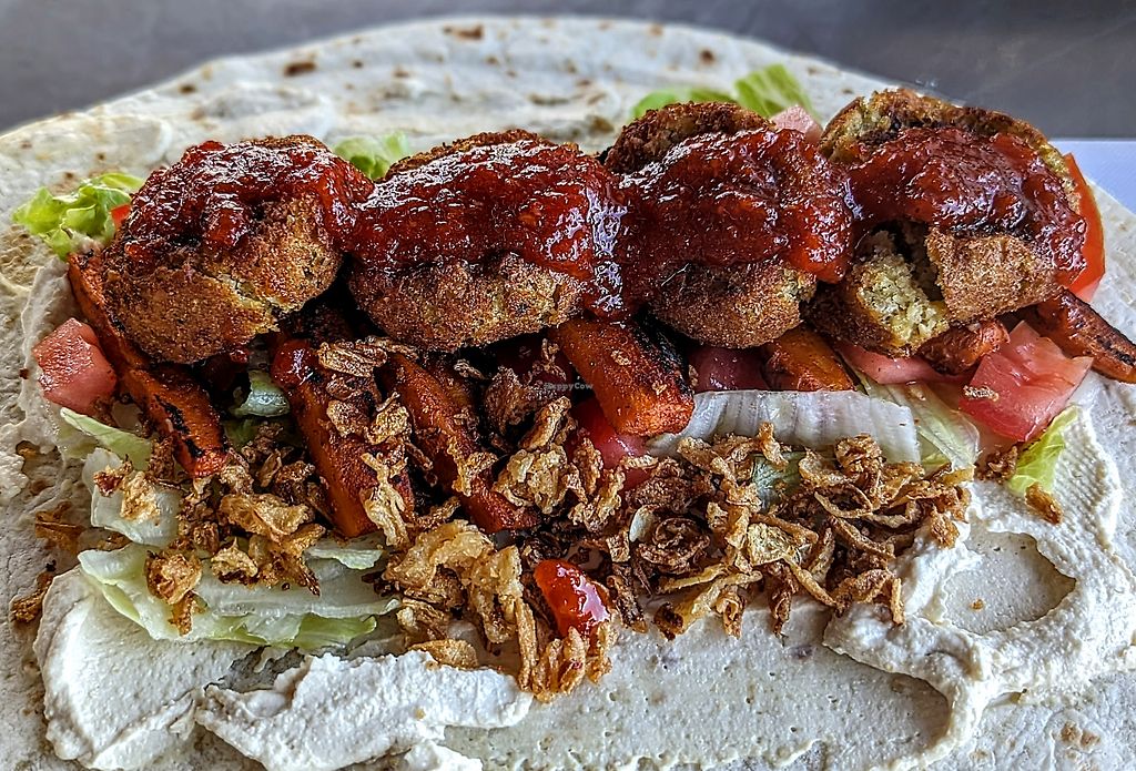 Read moreWe enjoyed a tofu Banh Mi sub sandwich, crispy tofu burrito with peanut satay sauce and loaded buffalo fries - huge portions and all delicious!