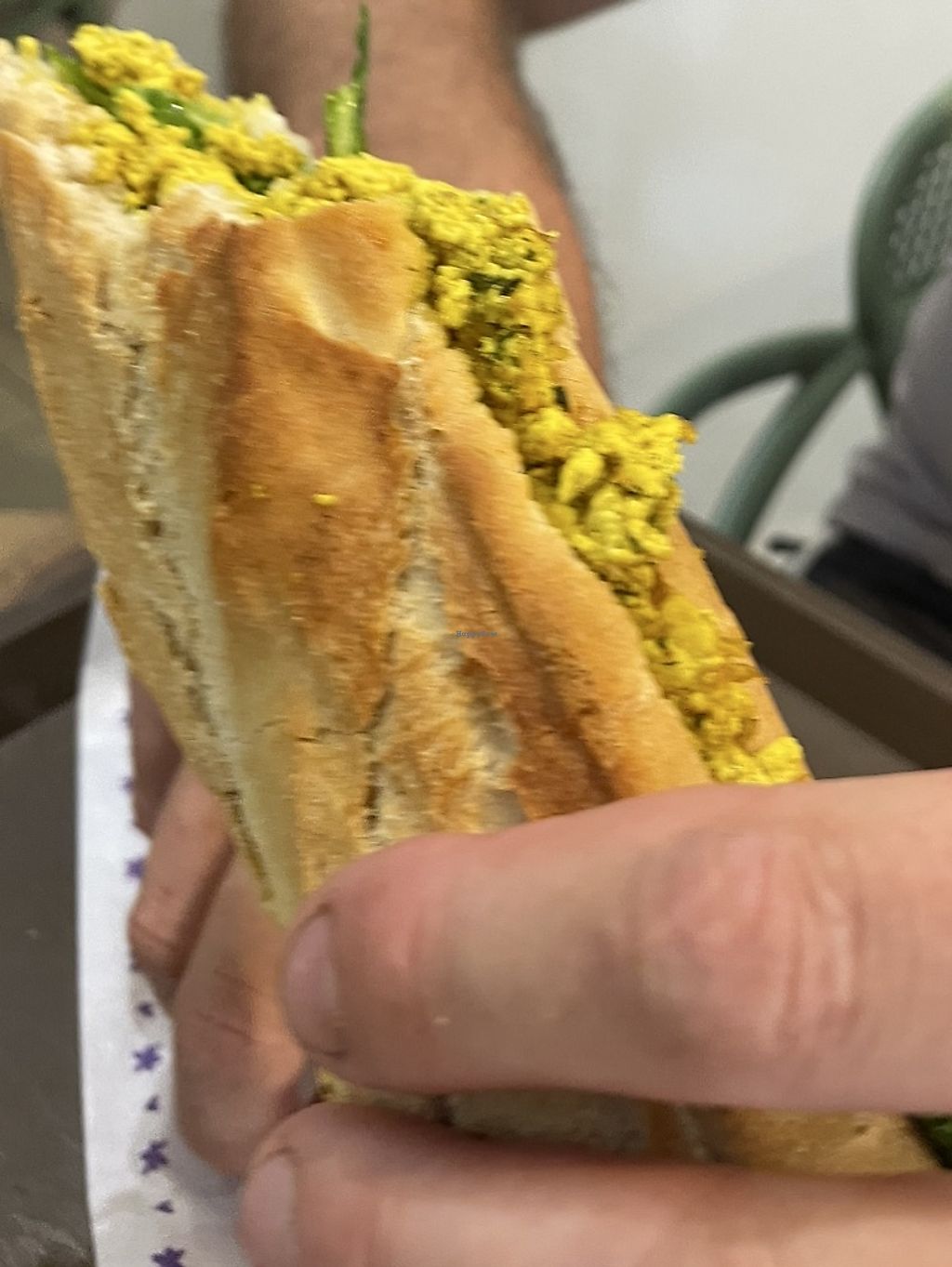 We ate two baguette sandwiches one with tofu and one with soya pieces. Both very tasty. Also had some cinnamon rolls which were fab. Lots of nice food here!