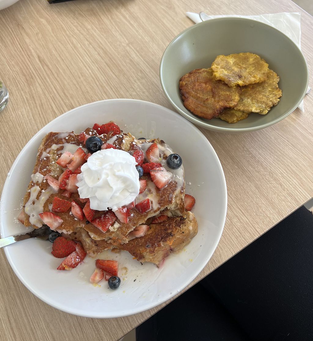 Oh. my. goodness. This food was phenomenal, and at great prices too. We had the tacos, which were super flavorful and just the right amount of food. The green sauce atop is outstanding. We also tried the french toast, which was served with fresh fruit, cocowhip(?), maple syrup, and the BEST marmalade we have ever had the pleasure of eating. Also had a dirty matcha latte, which was fantastic. Wow!! Super amable people who own and run the place as well. Lo mejor! If you are vegan and staying in the Luquillo or Fajardo area, this needs to be a must stop on your dining itinerary - we were just sorry we only discovered it on our last day.