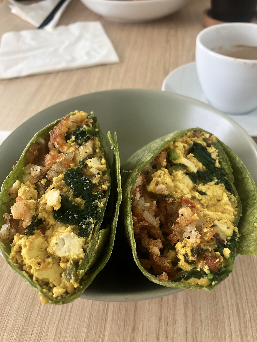This vegan friendly café serves breakfast and lunch. I believe it's a daily lunch special. There are a few breakfast options. I got the breakfast burrito. It was very good with hot sauce (not sure if they have any but I had some at my condo). Coffee is kind of weak but OK - they do have coconut whipped cream. I believe they have regular dairy milk so make sure you specify nondairy when ordering coffee ($1 surcharge 🙄). I would recommend and I will return.