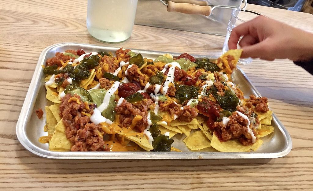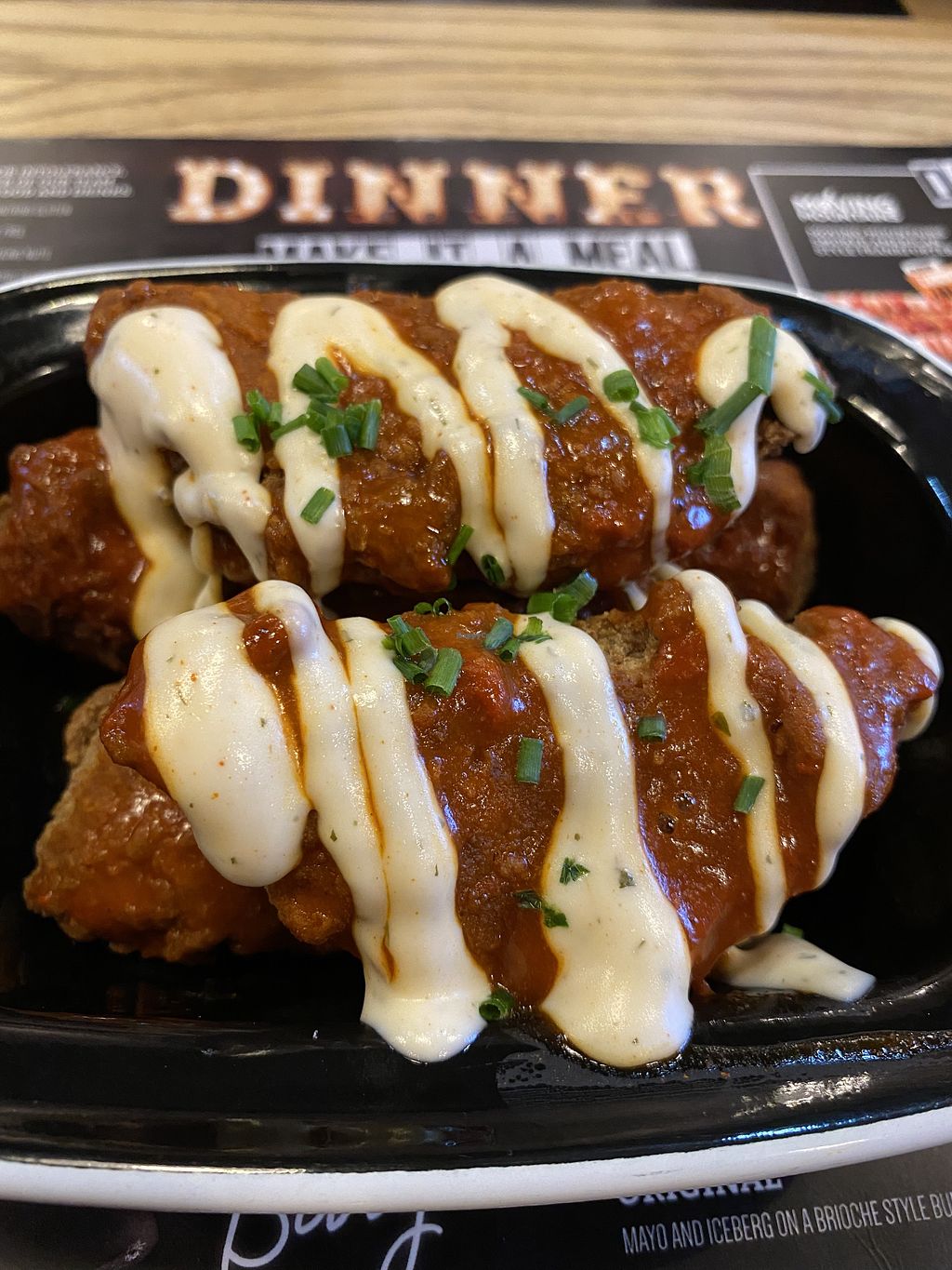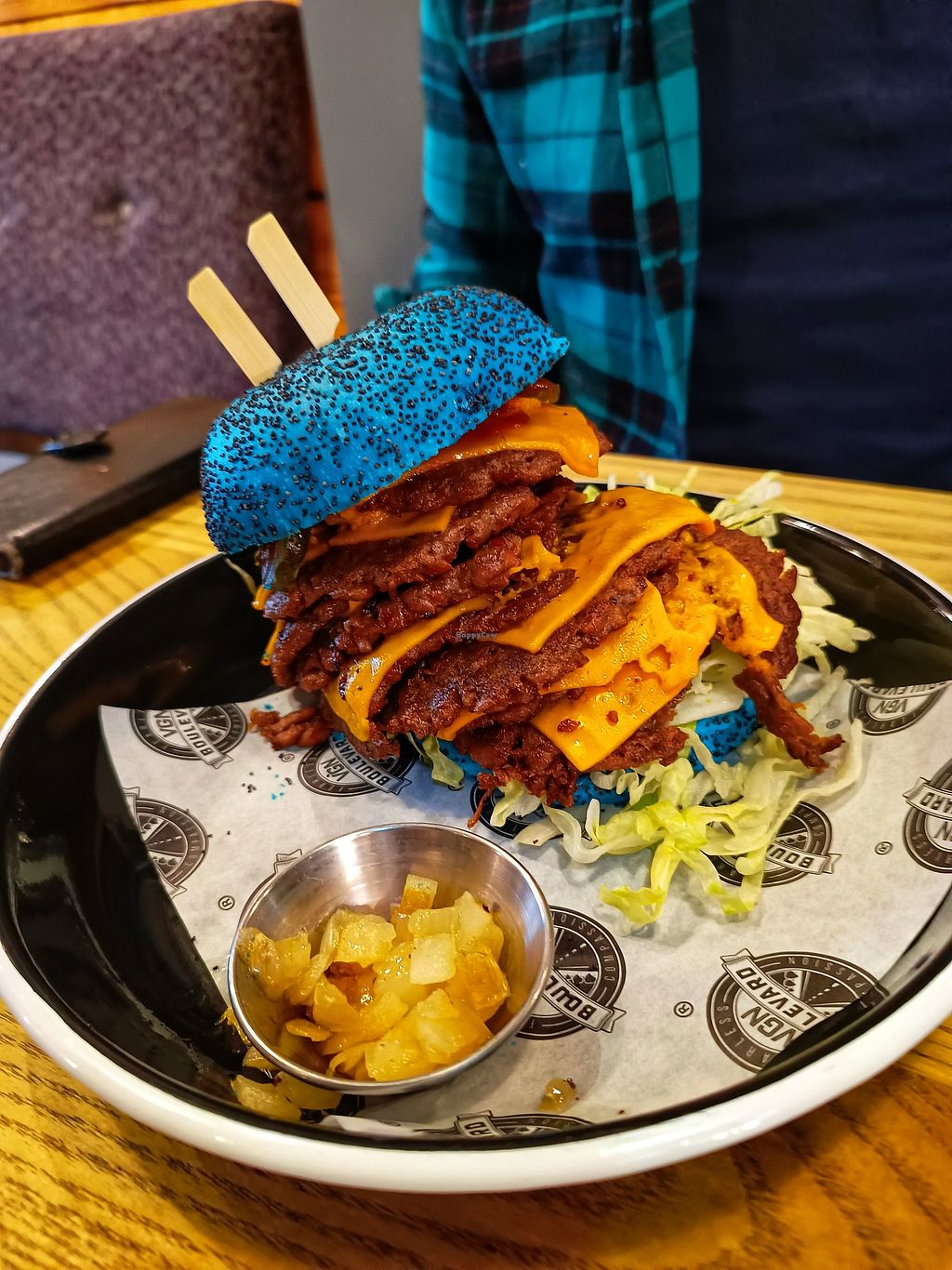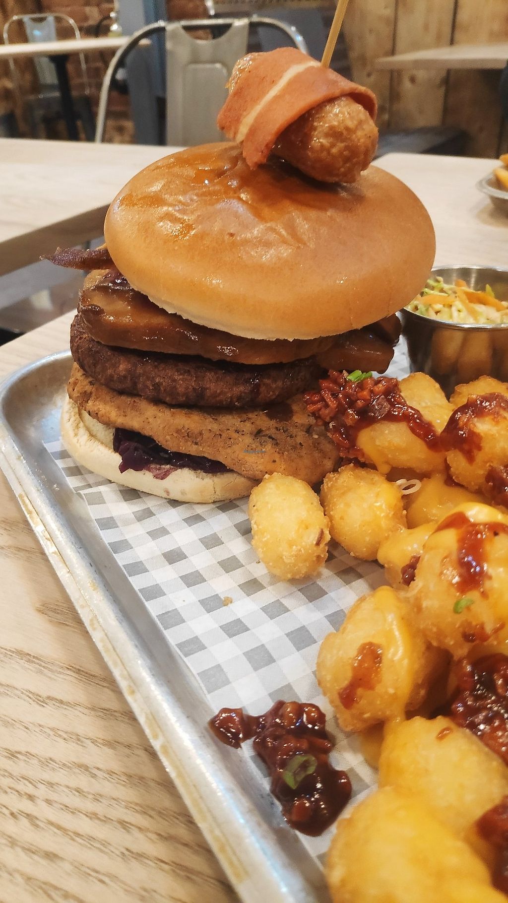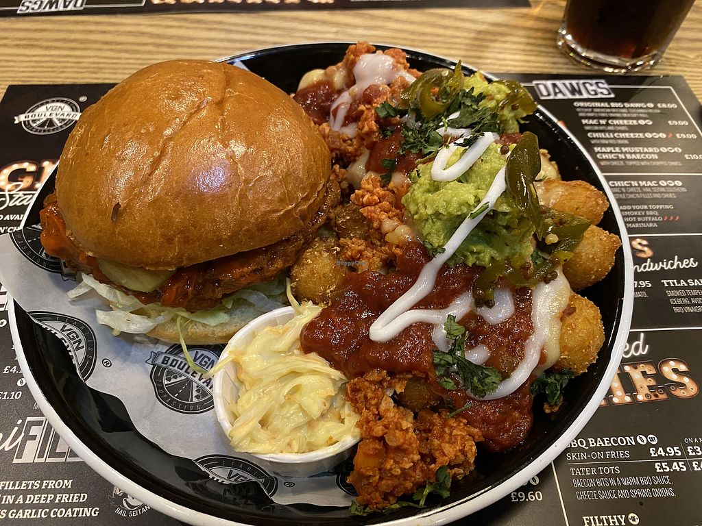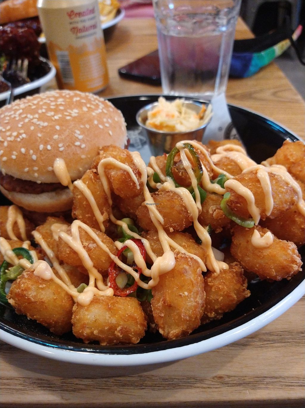 Buffalo Burger with Loaded Chilli Cheeze Tater Tots