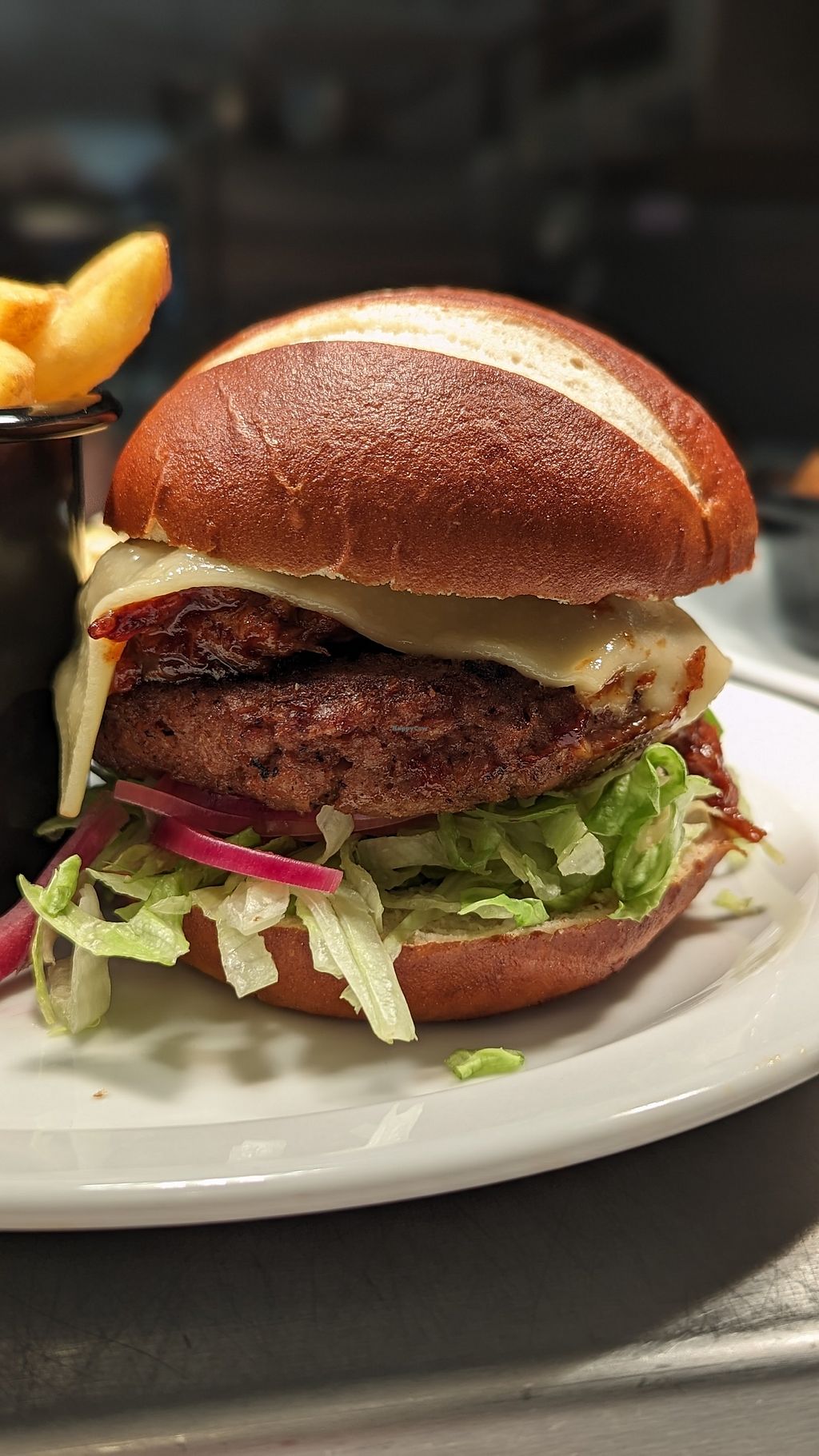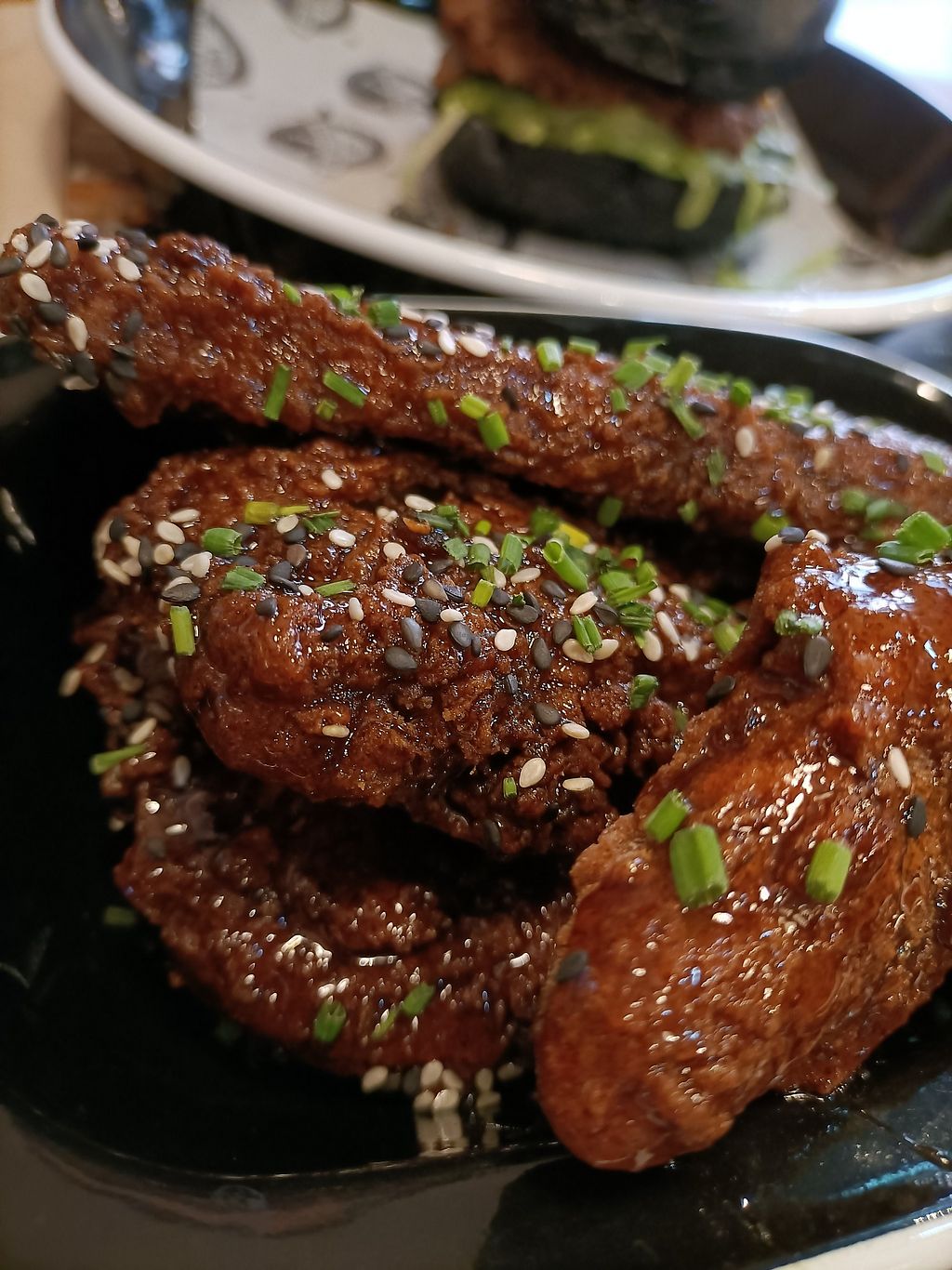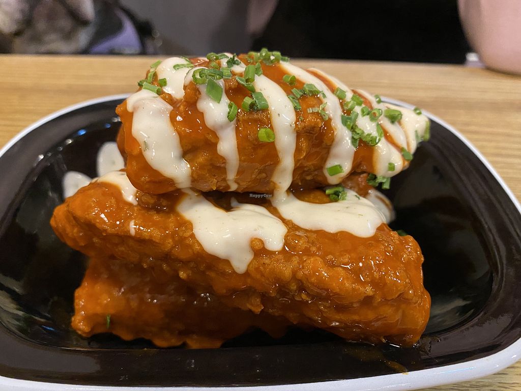 Hot Buffalo dipped Chic'n Fillet Burger (Hail Seitan)