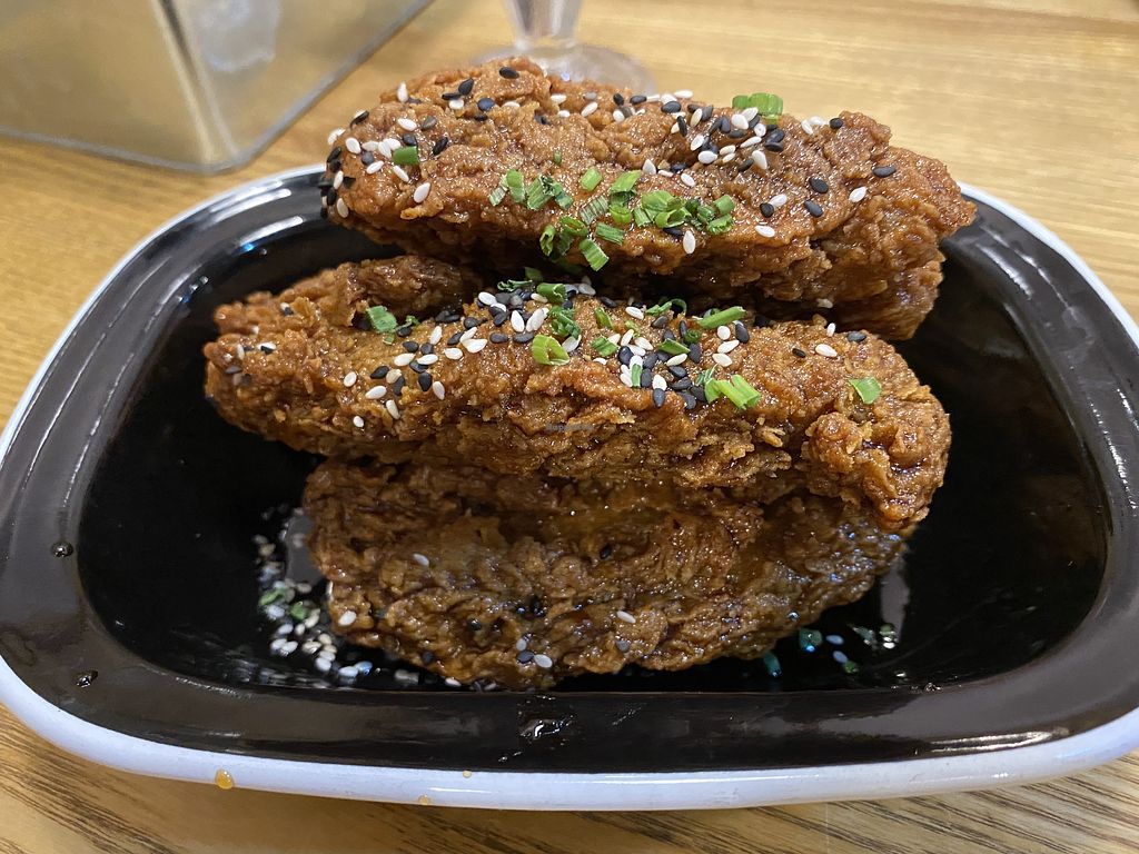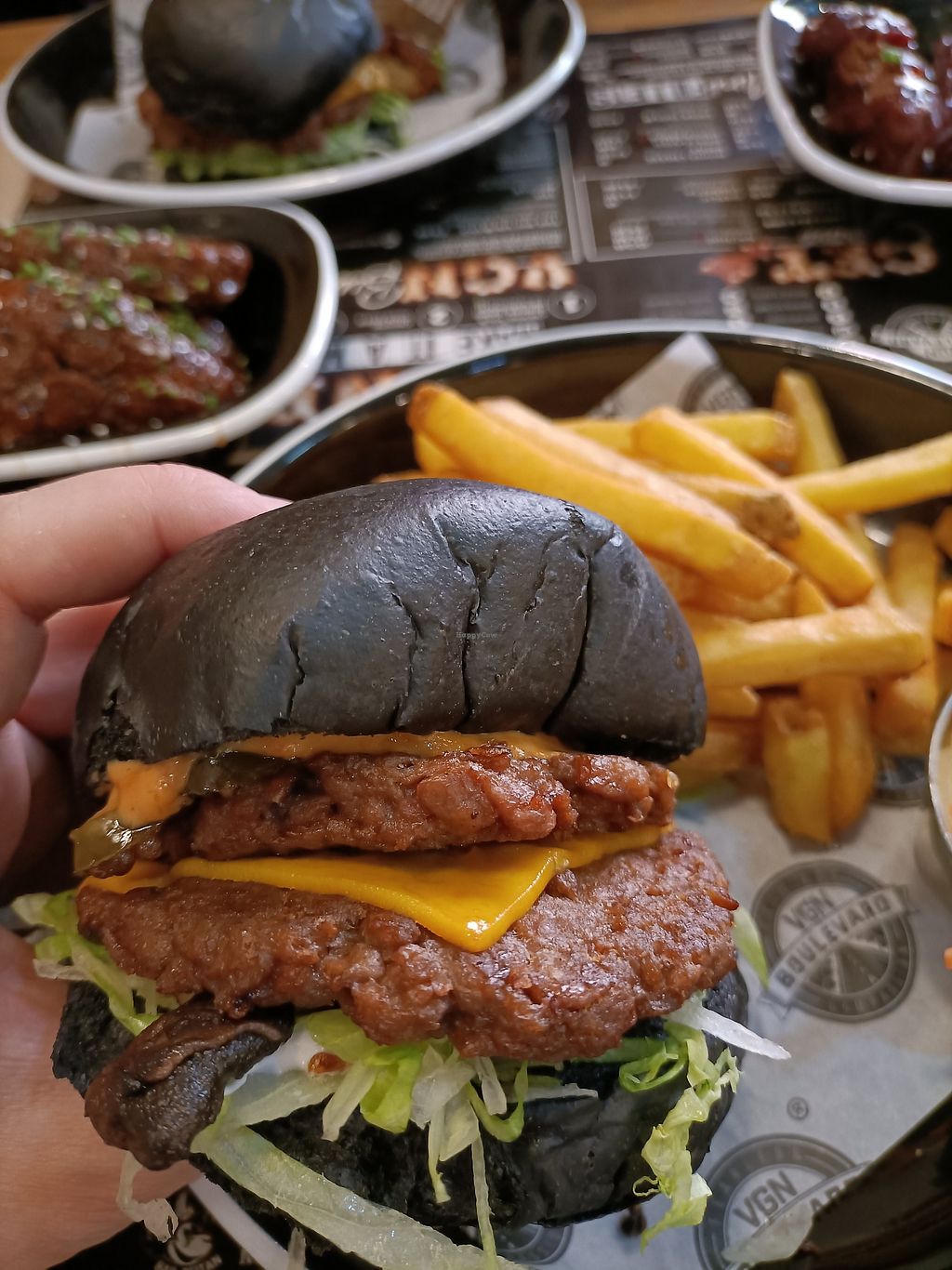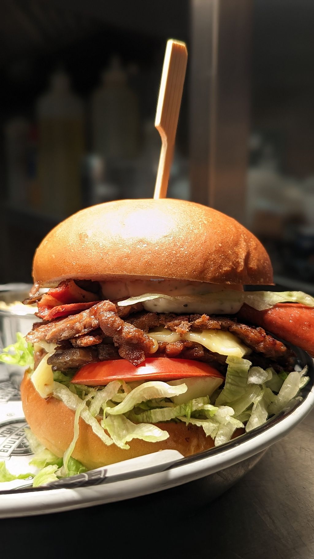 Hot Buffalo dipped Chic'n Fillet Burger (Hail Seitan)