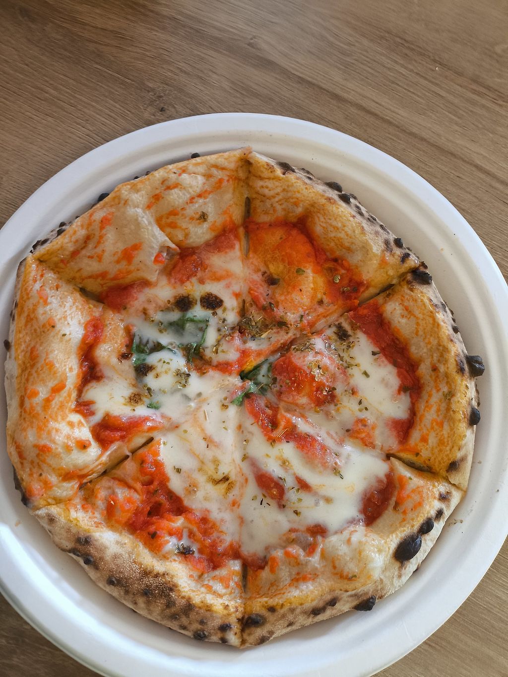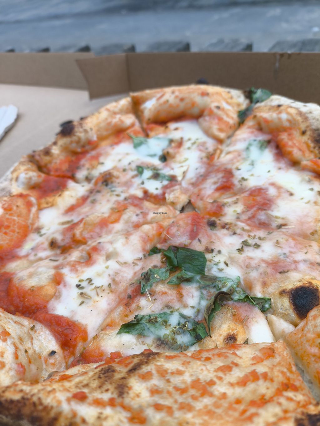I just tried their margharita pizza at Salisbury vegan fair. The cashew mozzarella is smooth and creamy. Mostly though their strength is in the basic pizza components: nice chewy crusts and a homemade, tangy passata sauce with just the right amount of fresh basil seasoning.