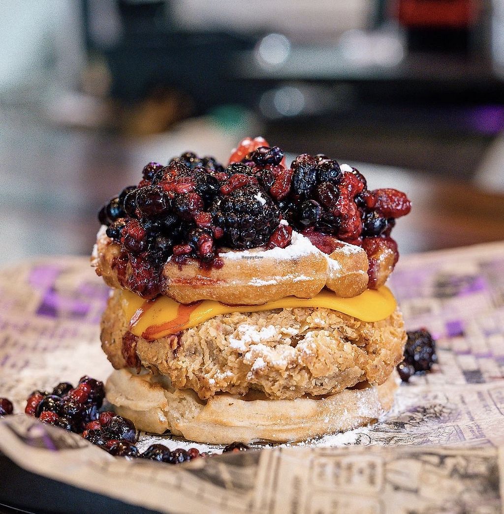 No chickens hardened - vegan chick’n sandwich on a gluten free bun!!
