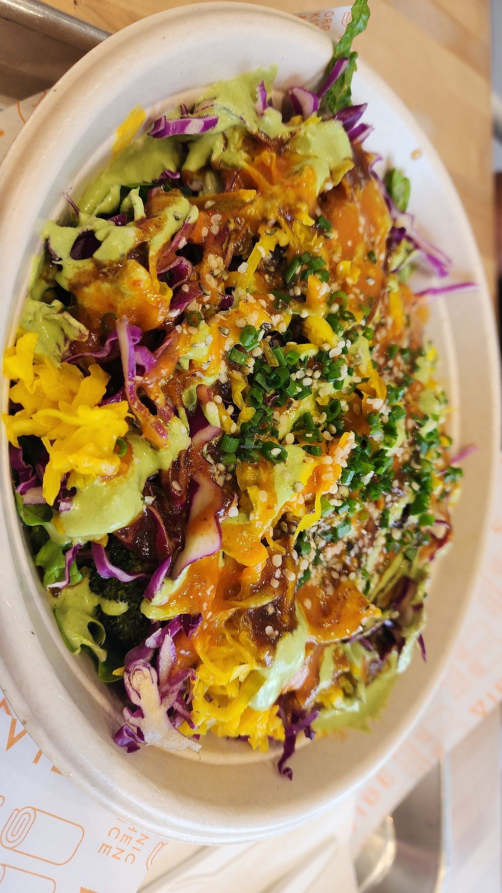 Read moreThe first time was a pit stop between lunch and dinner. My sister and I shared the macro bowl and the immunity juice. Their bowls are so filling! I’m glad we shared. The macro bowl was perfect: delicious turmeric sauerkraut, decadent roasted butternut squash, sautéed kale, and tahini dressing. I got their bowl on a bed of half greens half quinoa. Really appreciate they allow that as an option. The immunity juice was mostly carrot and orange with an interesting note from the oil of oregano. Very interesting and slightly savory.
